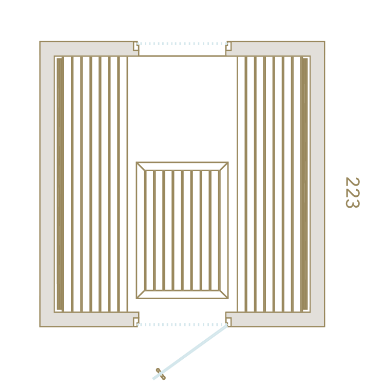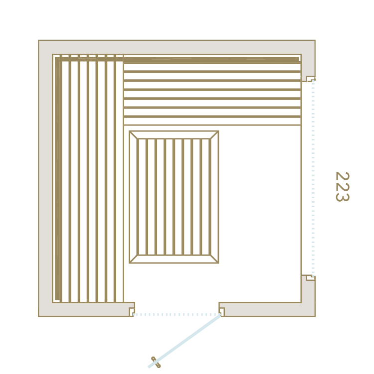 223 x 223 cm Fenster an der Rückwand - Variante 1