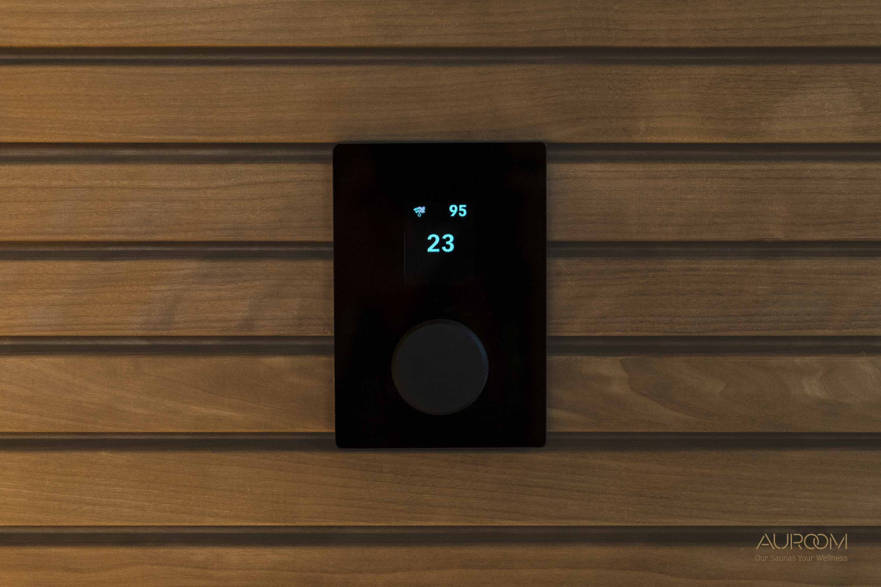 HUUM Core 10,5 kW-Heizung und Regler, die über HUUM Mobile App bedient werden können.