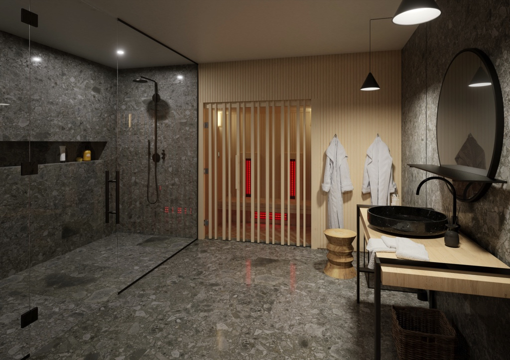 Eine spektakuläre Sauna mit markantem Design, in der dein Körper durch Infrarottechnologie erwärmt und deine Augen vom modernen Design verwöhnt werden.