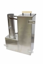 Technische Informationen: - Wärmeübertragungsfläche ca. 2 m² - Heizleistung 27 kW = Erwärmung um 23 Grad / Wasserkubikmeter / Stunde - Schornsteinanschluss: Ø150 mm - Im Ofen befinden sich drei abgeschrägte vertikale Rohre, die durch die Feuerstelle verlaufen. Verwendung: Bei der Nutzung ist zu beachten, dass die Feuerstelle des Ofens vollständig mit Wasser überdeckt ist und sich darüber mindestens 35 cm Wasser befinden müssen. Die minimale Wassermenge ist auf dem Ofen mit der Ausstanzung _MIN_ angegeben. Das Becken darf nicht entleert werden, bevor das Feuer vollständig erloschen und die Glut im Ofen verglüht ist. Um die versprochene Leistung des Ofens zu erhalten, muss in der Feuerstelle ein ordentlich brennendes Feuer aufrechterhalten werden. Die Asche ist nach jeder Nutzung zu entleeren, wodurch sich auch die Lebensdauer der Roste verlängert. Bitte lesen Sie vor der Nutzung sorgfältig die Gebrauchsanweisungen.
