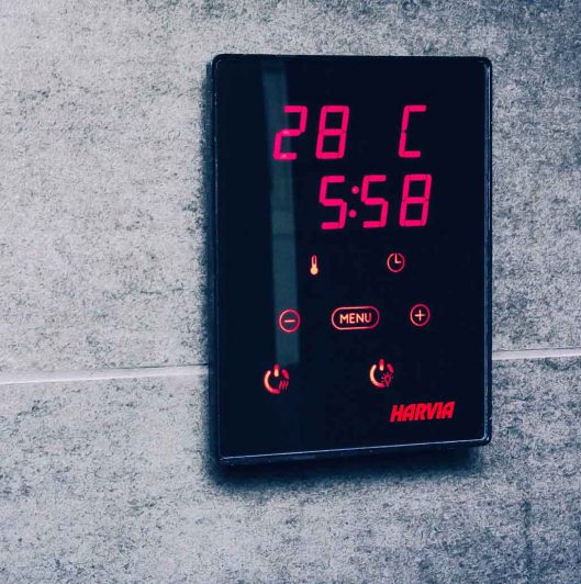 Die elegante Steuerung macht die Bedienung zum Kinderspiel. Die Sauna ist exakt dann bereit, wenn Sie es möchten.