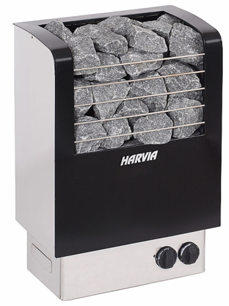 Elektrosaunaofen. Mit einem Bedienschalter ausgestattet. Aus schwarz lackiertem, verzinktem Stahl hergestellt. Saunaofen bietet ein angenehmes Saunaerlebnis.