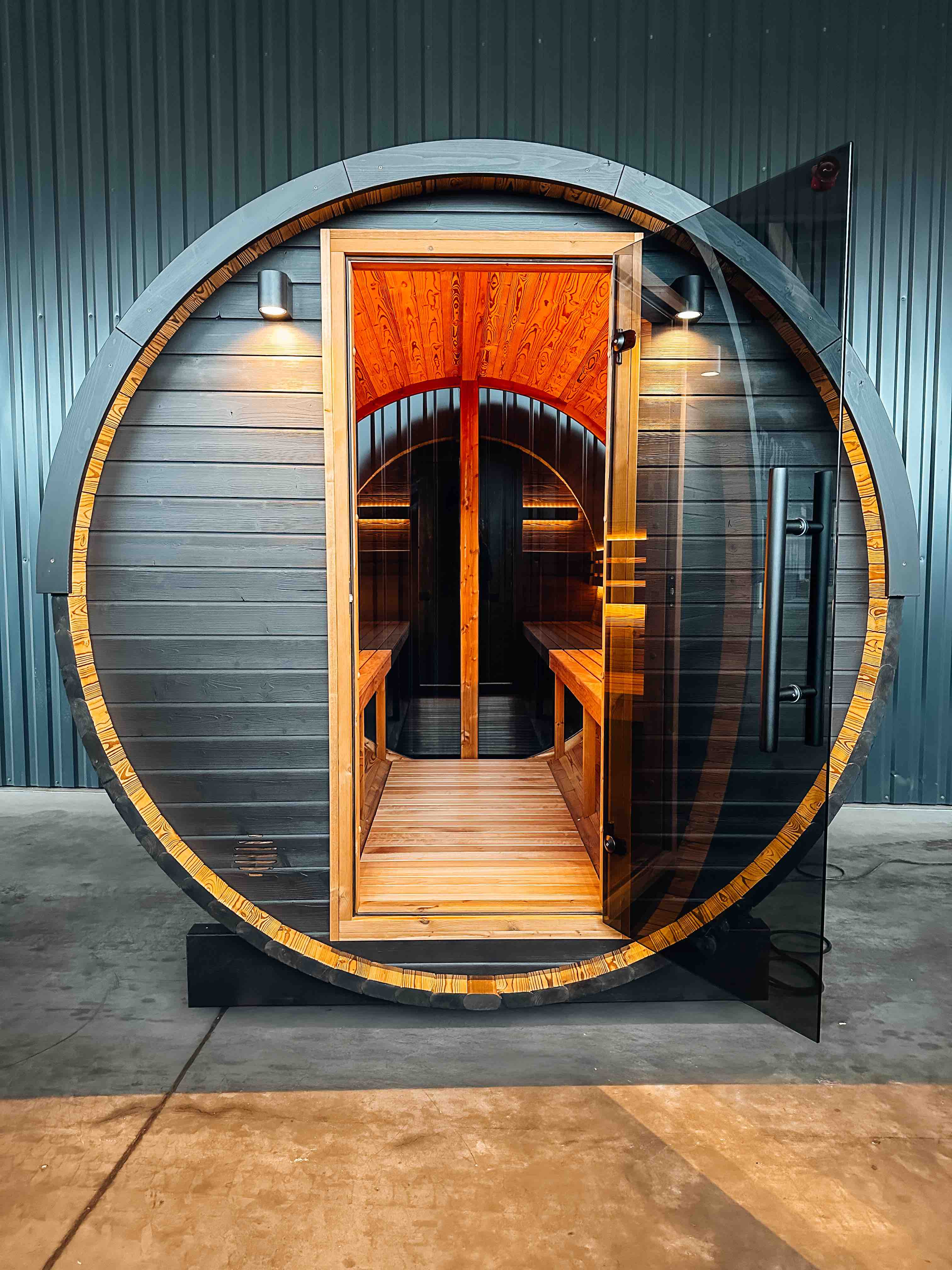 HALO-Saunen sind auf Komfort und Langlebigkeit ausgelegt und zeichnen sich durch eine runde, stromlinienförmige Form aus, die die Wärmeverteilung und Energieeffizienz optimiert. Diese Fasssaunen bieten eine gemütliche Atmosphäre zum Entspannen und werten jeden Außenbereich mit ihrem rustikalen Charme und ihrer modernen Funktionalität auf. Wählen Sie HALO für einen Hauch von Luxus in den Modellen Cosy oder Comfy, mit optionalem Umkleideraum für zusätzlichen Komfort.