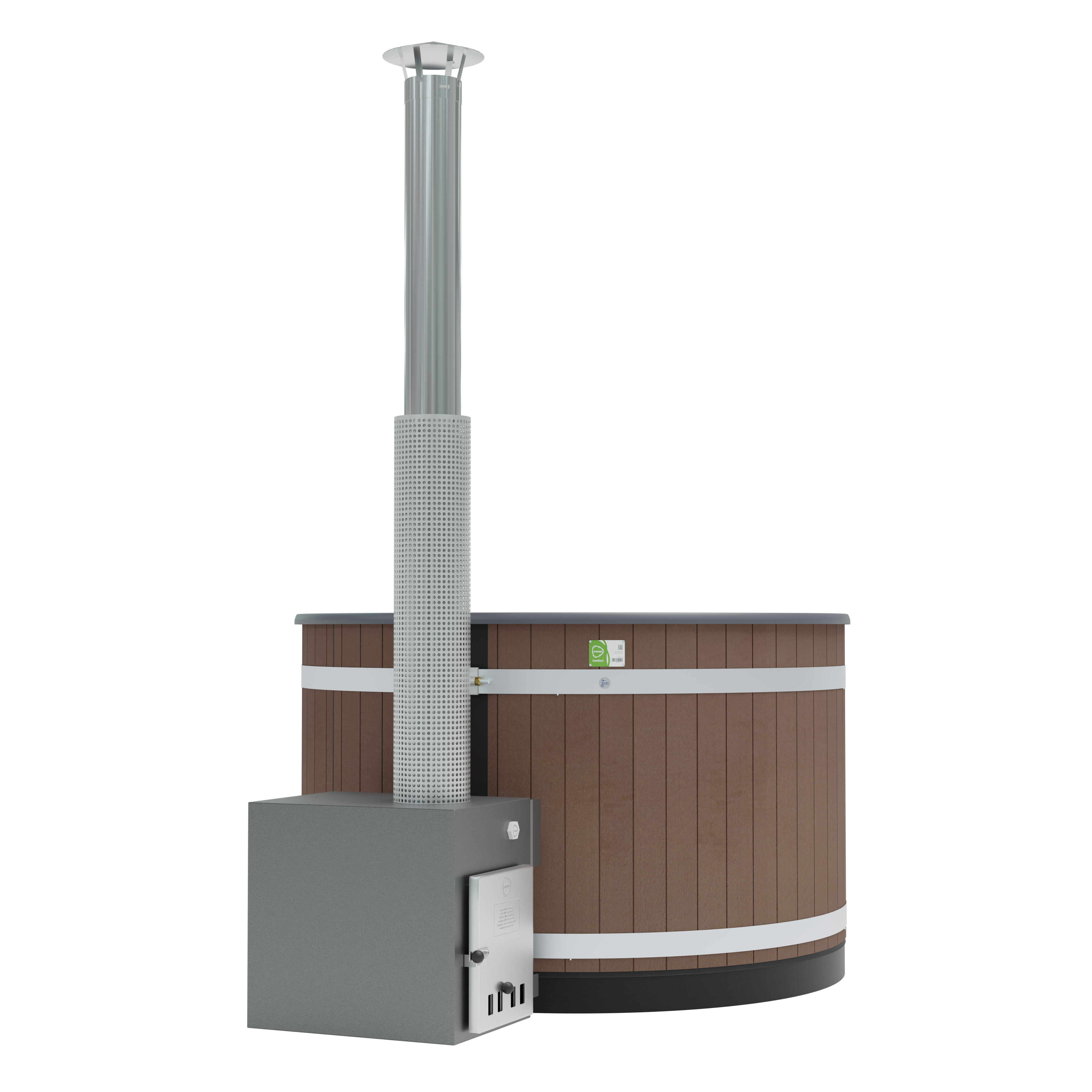 Als Außenofen kommt der grau gehaltene Macu zum Einsatz, der sich ideal zum Beheizen mittelgrößer Badefässer eignet. Er wurde aus hochwertigem Meeresaluminium gefertigt, was eine äußerst gute Wärmeleitfähigkeit sicherstellt.