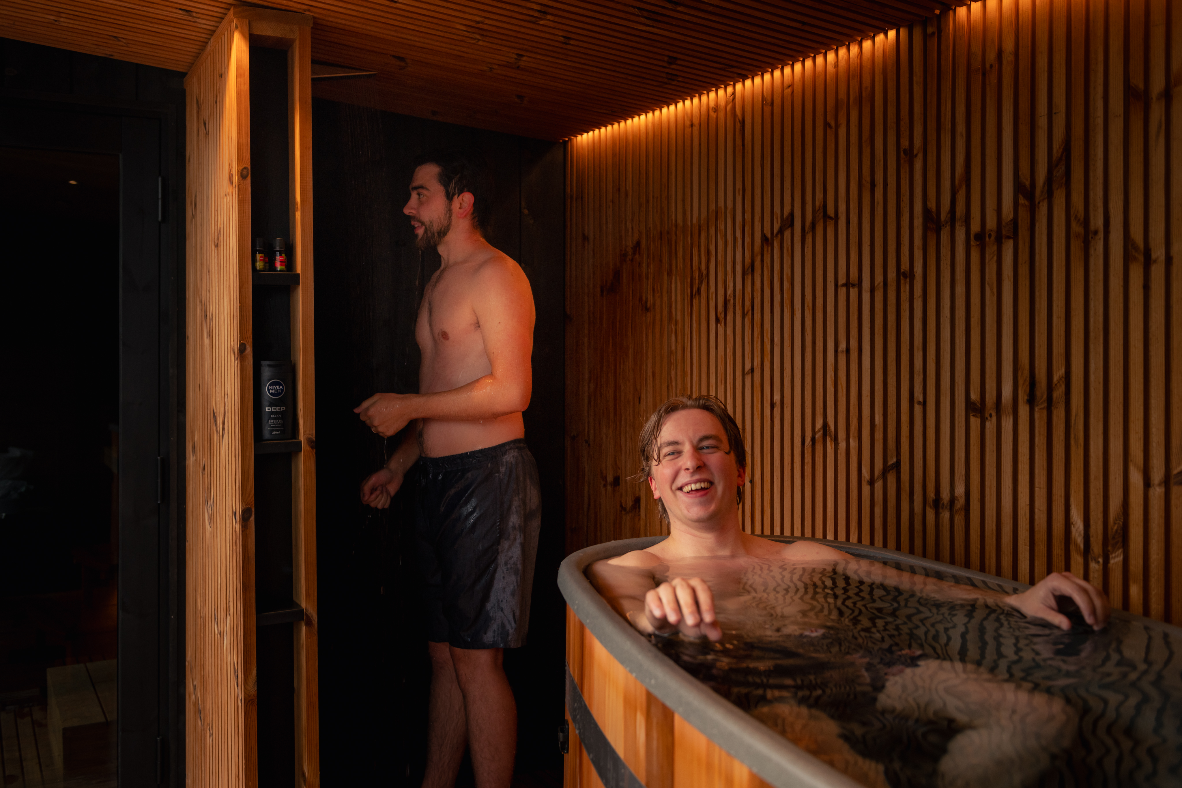 Vor und nach dem Saunieren ist es schön, sich unter der Dusche zu erfrischen. Deshalb wurde für die FinVision® Misty Modulserie von Kirami eine eigene stilvolle Außendusche entwickelt. Die Dusche sorgt für Abkühlung und hilft dabei, die Sauna, das Badefass und die Abkühlbereiche sauber zu halten. Die Außendusche fügt sich perfekt in die Annex-Module ein. Sie ist so bemessen, dass sie zu den Terrassenmodulen passt, kann aber auch z. B. neben Ihrem Schwimmbecken installiert werden.