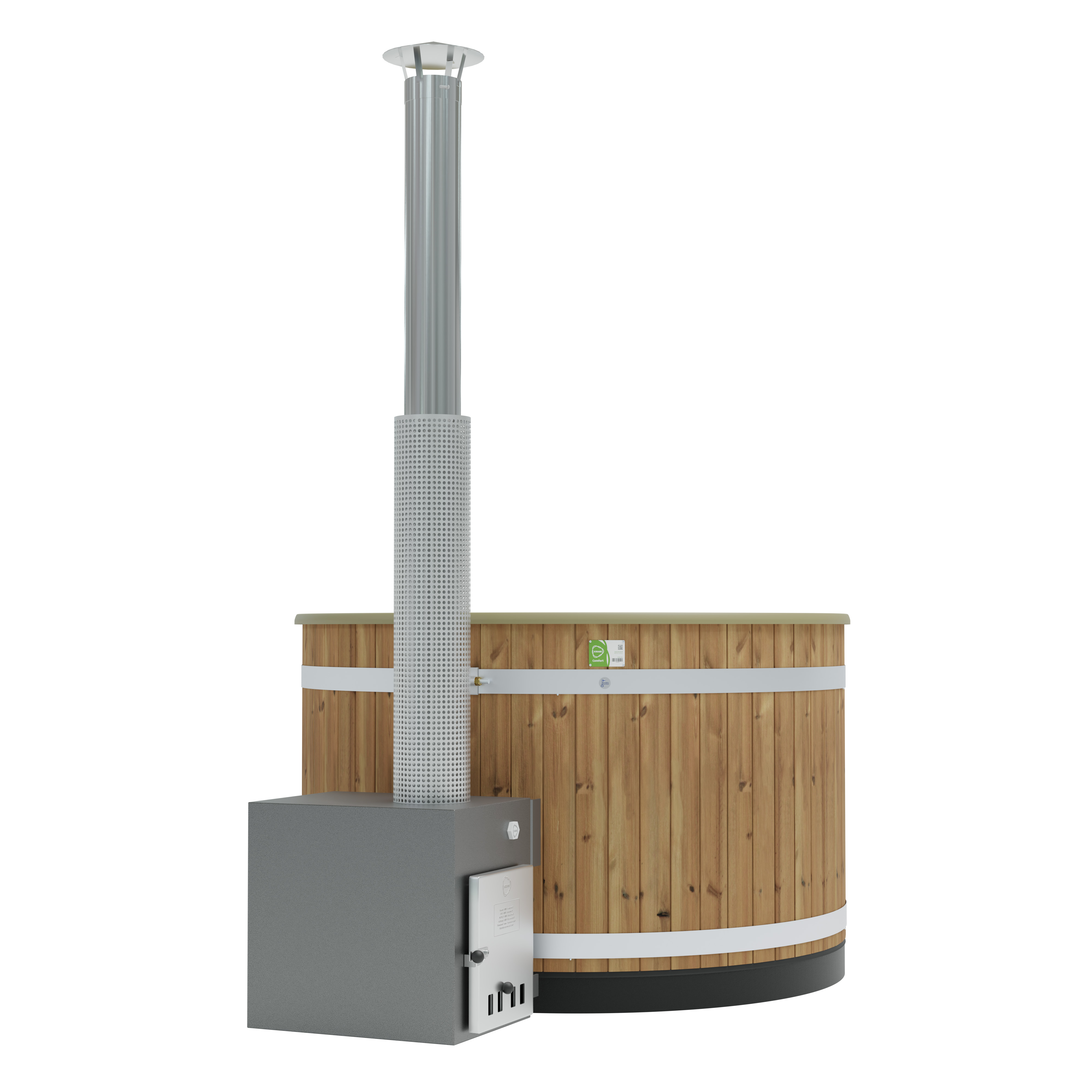 Als Außenofen kommt der grau gehaltene Macu zum Einsatz, der sich ideal zum Beheizen mittelgrößer Badefässer eignet. Er wurde aus hochwertigem Meeresaluminium gefertigt, was eine äußerst gute Wärmeleitfähigkeit sicherstellt.