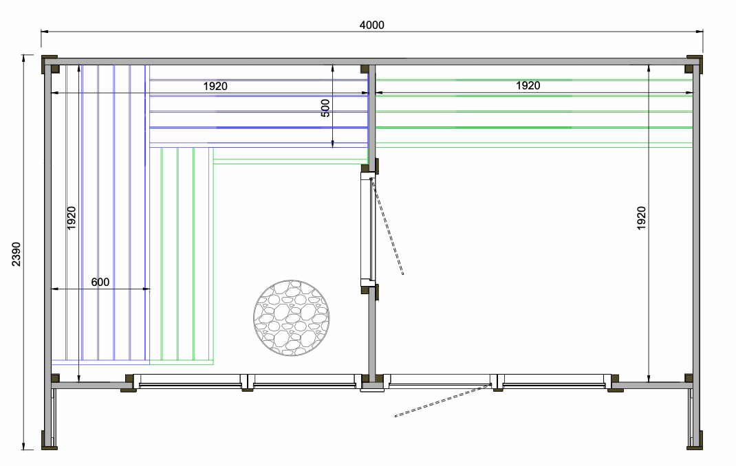 Es ist perfekt für diejenigen, die mehr Platz für ihr Saunaerlebnis wünschen. Die L-förmige Bank bietet Sitzgelegenheiten für Familien oder größere Gruppen.