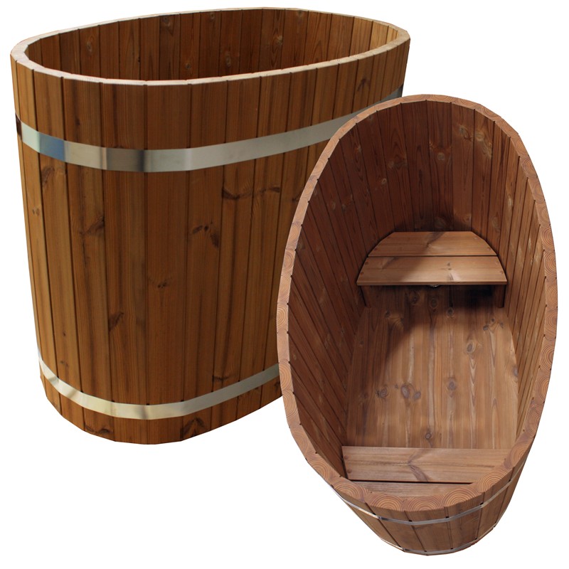 Ovales, innen beschichtetes Badefass mit 2 Sitzen. Inkl. Ablaß-Schlauch. Bei einem Wasserspiegel von 20cm unterhalb der Kante beinhaltet das Fass ca. 490l Wasser. Die Außenabmaße sind : Länge = 133cm, Breite = 70cm, innere Höhe = 90cm. Als Werkstoff dient wärmebehandeltes, finnisches Kiefernholz. (LunaWood). Erhältlich auch mit Holz oder Elektroofen, LED Lichter, usw.
