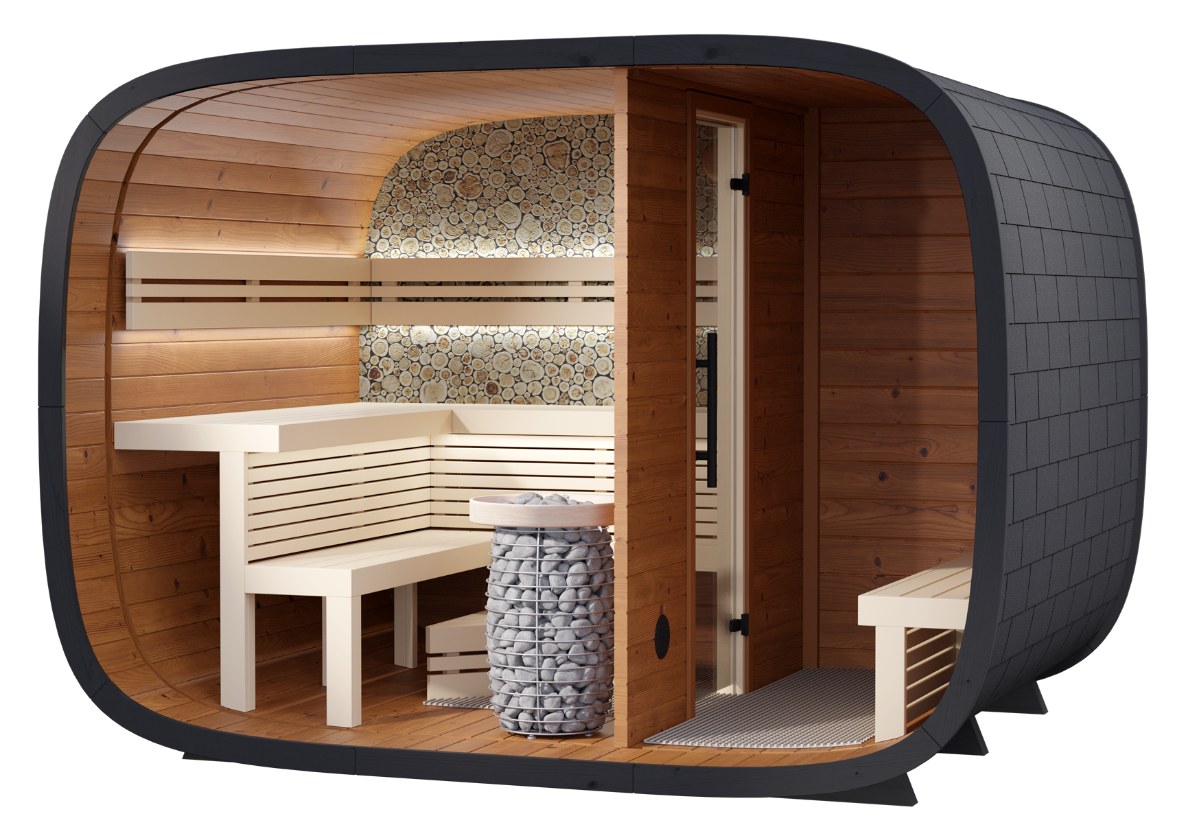 Der Round Cube DOUBLE MIRROR ist die perfekte Wahl, wenn zusätzlich zum Dampfbad ein zusätzlicher Raum benötigt wird.