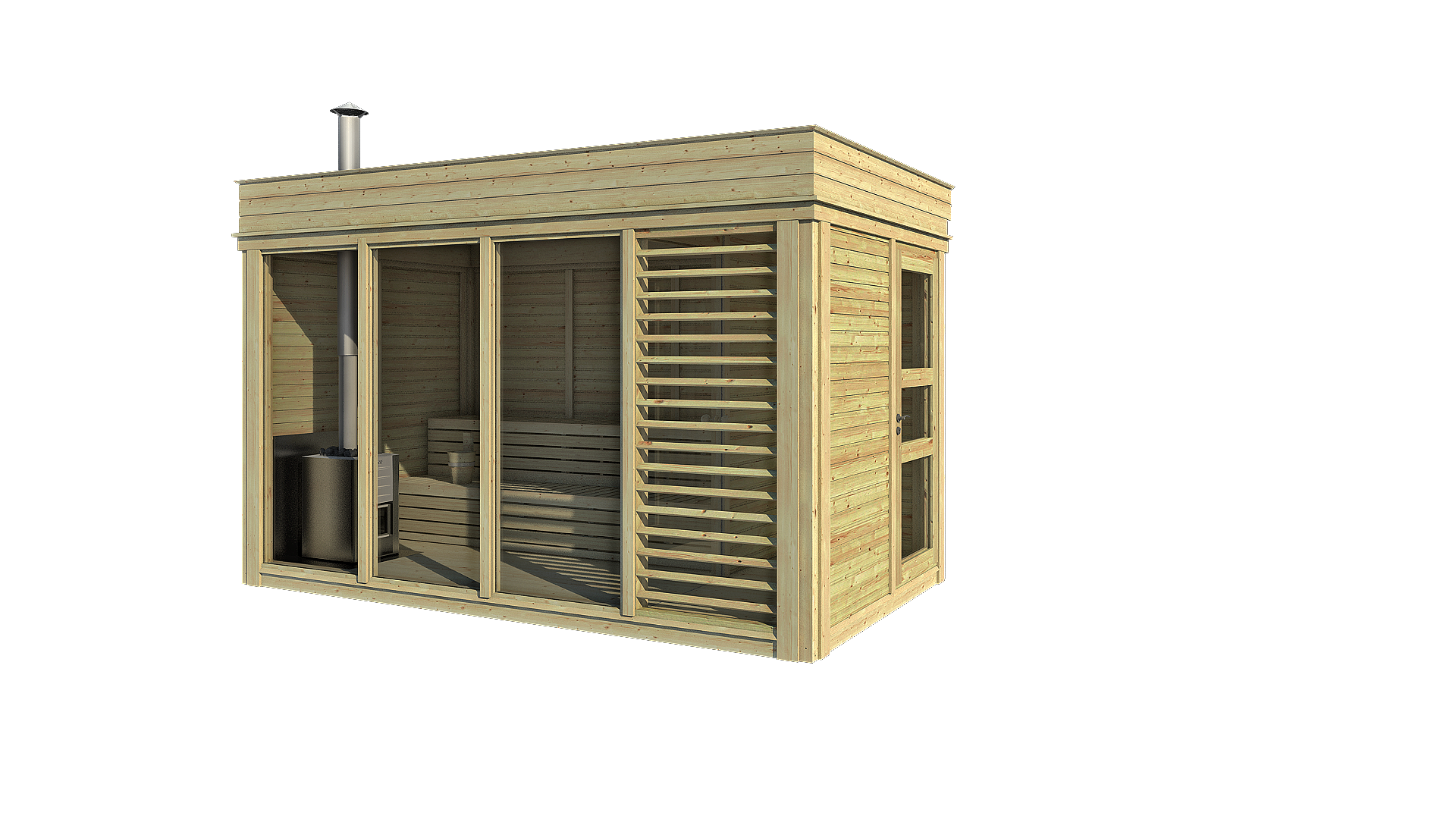 Die Wände. Die 1000 x 2200 mm Wände bestehen aus Fichtenholz, welches aus FSC-Zertifizierten Wäldern in Nordeuropa kommen. Die leicht, goldweiße Fichte ist ideal für unsere Würfelprodukte. Isolierte Wände. 75x45 mm dicker Wandrahmen, Innenwand aus 96x12 mm dicken Brettern und Außenwand aus 145x18 mm horizontalen Verkleidungsbretter. Dekorative Sonnenschutzwände. 75x45 mm dicker Wandrahmen. Die horizontale Sonnenschutzbretter sind 18x95 mm dick. Gehärtete Panoramafenster mit Holzrahmen.75x45 mm dicker Wandrahmen mit gehärteten Glasfenster.