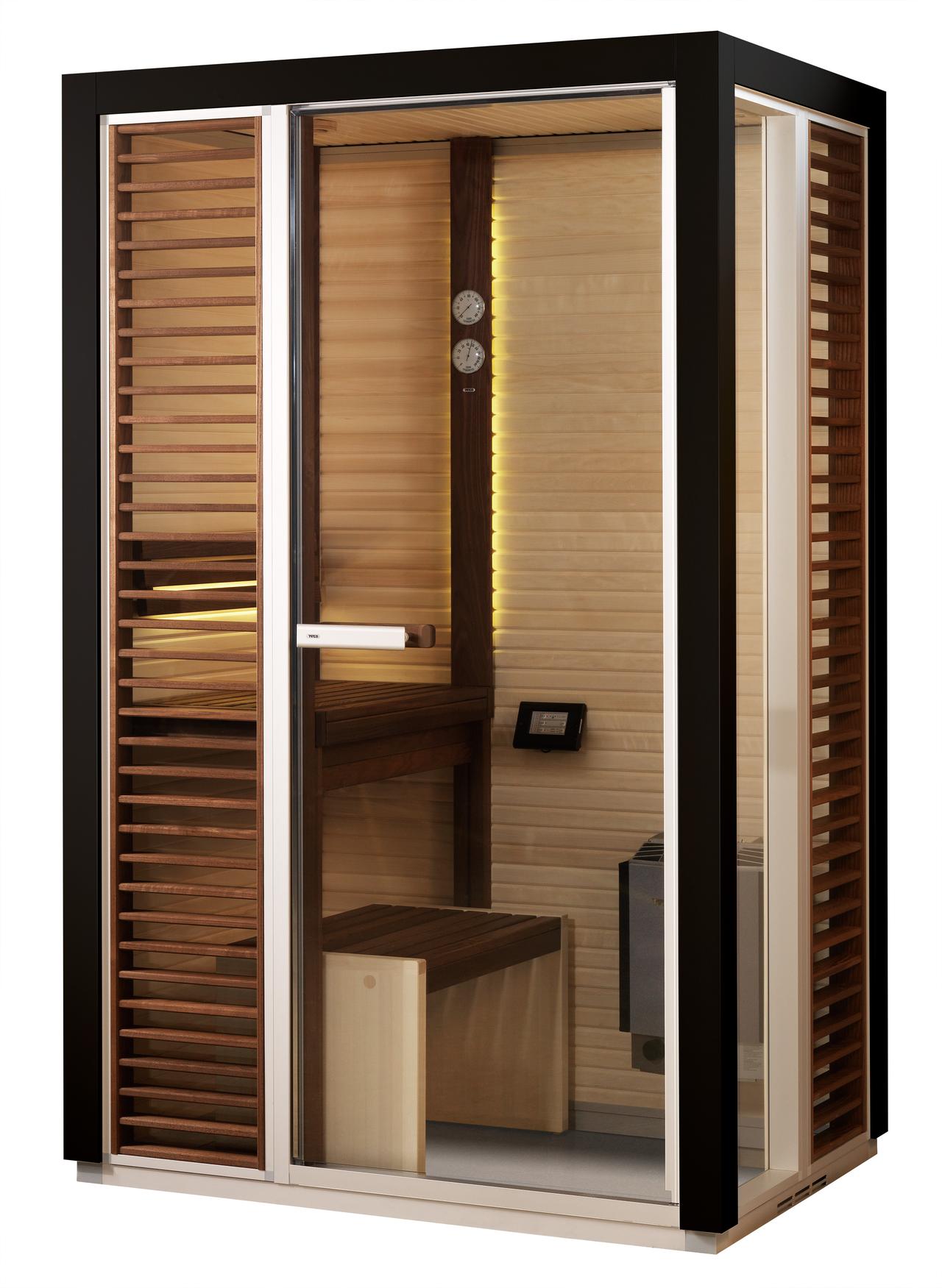 Mit nur 1,3 qm Grundfläche hat Tylö eine Sauna geschaffen, die ebenso als traditionelle Sauna, wie auch als Dampfsauna ausgestattet werden kann. Für den Wellnessbereich zuhause ist das eine Revolution, sie ist so kompakt, dass sie in viele Badezimmer passt.