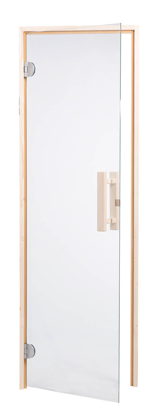 3-seitiger Rahmen, Klarglas 8 mm ESG, Bänder links oder rechts anschlagbar Glas: 680 mm x 1915 mm Rahmen: Fichte: 740 x 1960 x 40 mm
