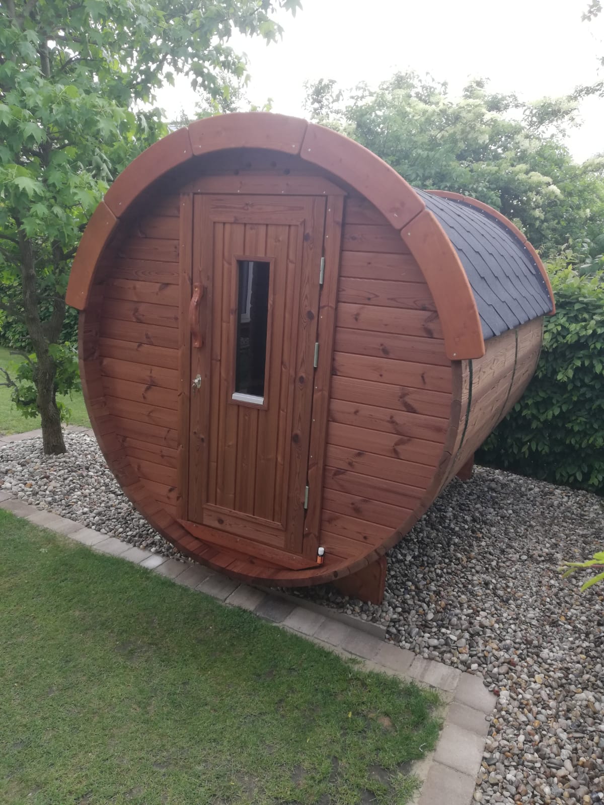Dieses einzigartige Saunafass, mit der Länge von 2 m und einem Durchmesser von 1,9 m, passt in jeden Garten. Es kann innerhalb vier Stunden zusammengebaut werden. Sie können entscheiden, ob Ihr Saunafass lieber aus Fichten- oder Thermoholz gemacht werden soll.