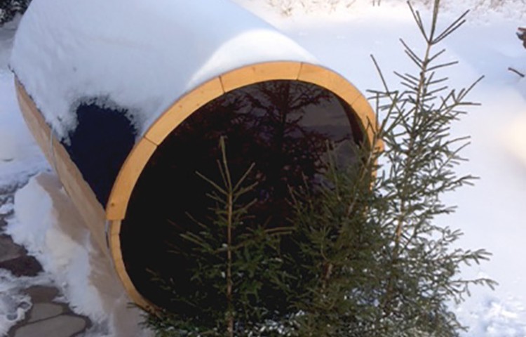Sie können entscheiden, ob Ihr Saunafass lieber aus Fichten-, Lärchen oder Thermoholz gemacht werden soll. Auf Anfrage können wir einen Holzofen oder einen Elektrosaunaofen einbauen. Die Wände sind 38 mm dick und der Massivboden hat eine Dicke von 18 mm. Das Dach ist -je nach Wahl- mit Bitumenschindeln (schwarz/rot/grün) oder Holzschindeln bedeckt. Die Gesamthöhe (mit Kamin) beträgt 2,4 m.