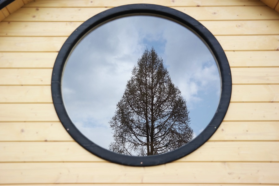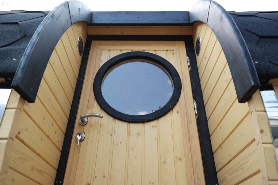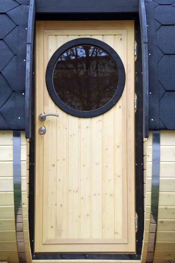 Vollglasfront statt Standardfront für Saunafass basic und Sinus ø 235 cm