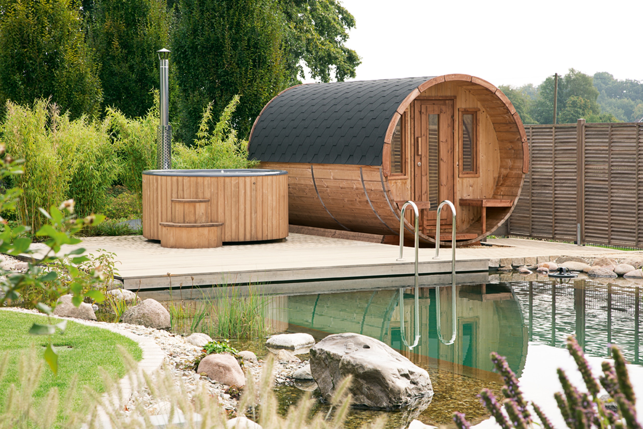 Mit dem Saunafass 400 SINUS holen Sie sich extravagantes Saunavergnügen in den eigenen Garten. Auf Wunsch erfolgt die Lieferung als komplett montiertes Produkt, das nur noch vom LKW abgeladen werden muss.