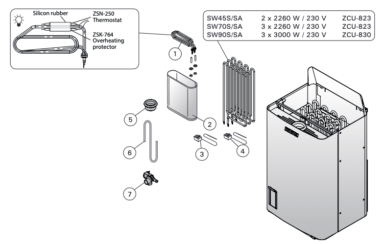 - Saunaofen Leistung 4,5 kW bis 9 kW