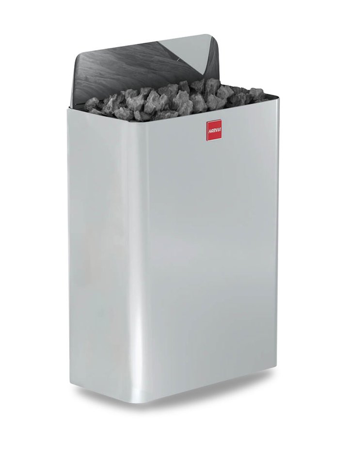 Der Wall E bietet ein einfaches, schlankes Design, das skandinavischem Minimalismus entspricht. Der Ofen passt in kompakte Räume und eignet sich für alle Arten von Saunen, zu deren stilvollem Erscheinungsbild er beiträgt.