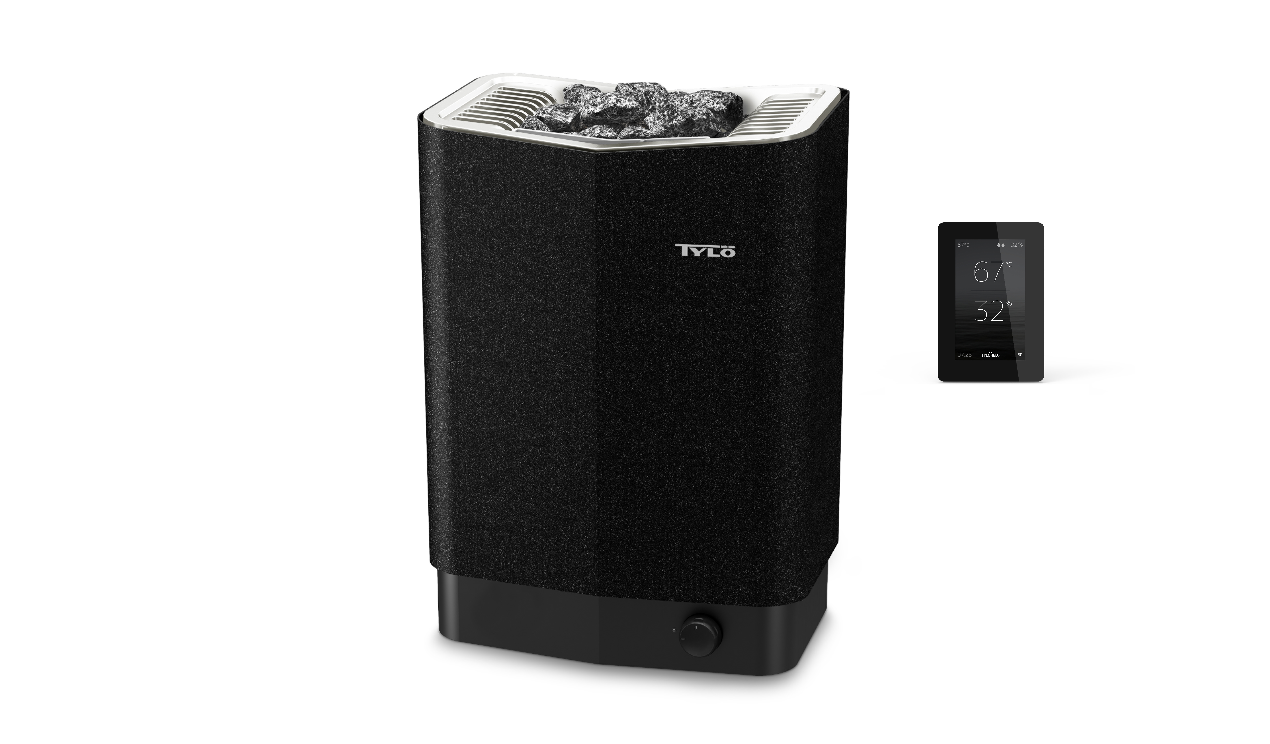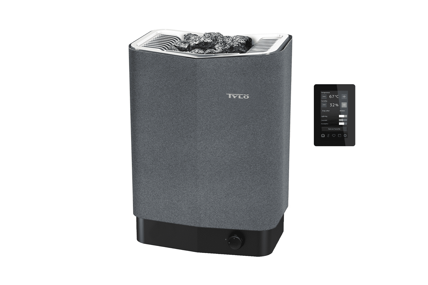 Der Ofen wird mit dem Steuergerät Elite geliefert, das Ihnen die volle Kontrolle über Ihre Sauna ermöglicht. Mit Elite, seiner WiFi-Funktion und seiner App können Sie Ihre Sauna bequem vom Sofa aus steuern.