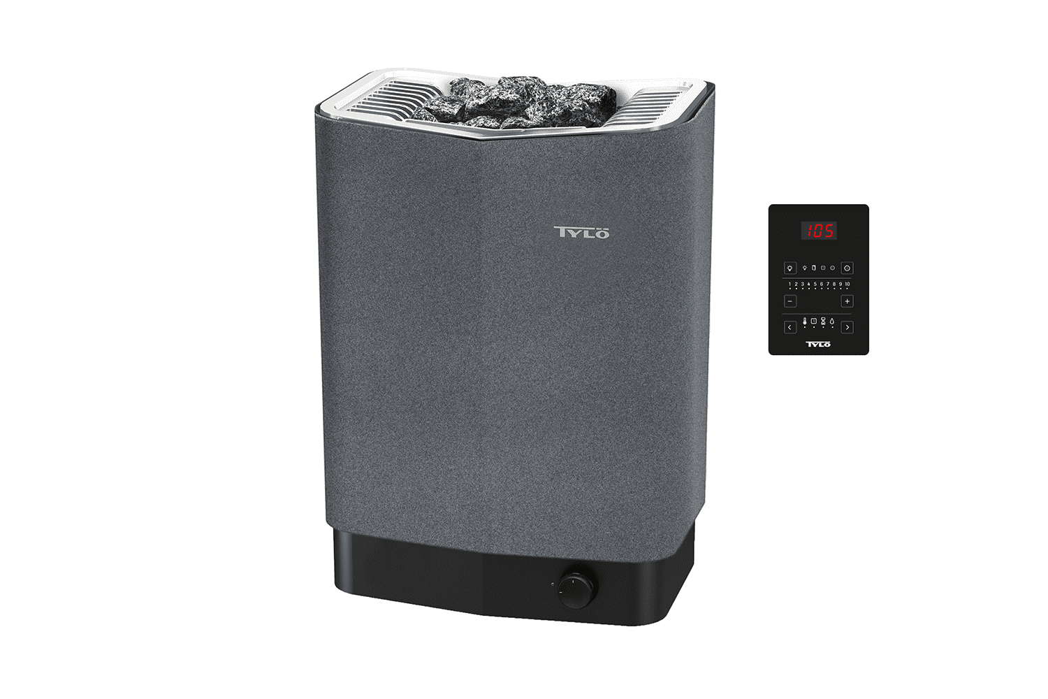 Der Saunaofen Tylö "Sense Pure" kommt inklusive dem elektronischem Steuergerät Pure, welches an der Seite des Ofens, innen an der Wand bis 100 cm Höhe oder außerhalb montiert werden kann.