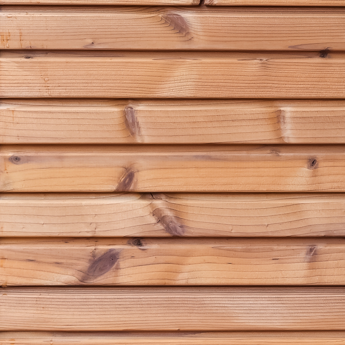 - Wände: 40 mm Thermofichte mit einzigartigem Verkleidungsprofil