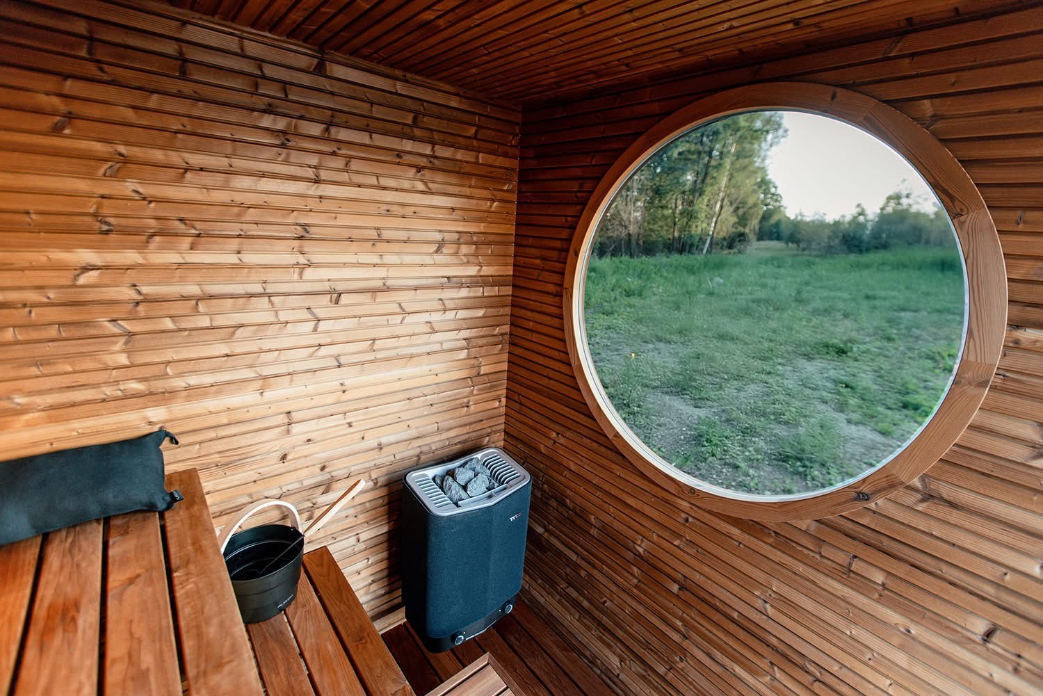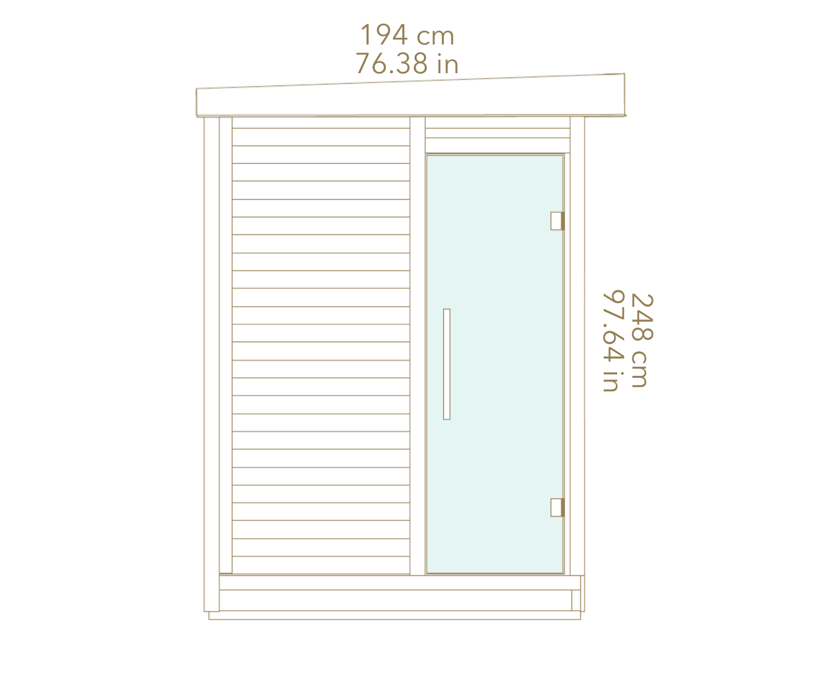 Entdecken Sie Kaia, die Außensauna, die beweist, dass Kompaktheit dennoch außergewöhnlich sein kann. Mit ihren klaren Linien, dem modernen Design und dem charakteristischen, von der Zen-Philosophie inspirierten runden Fenster bringt Kaia Ruhe und Eleganz in jeden Garten.