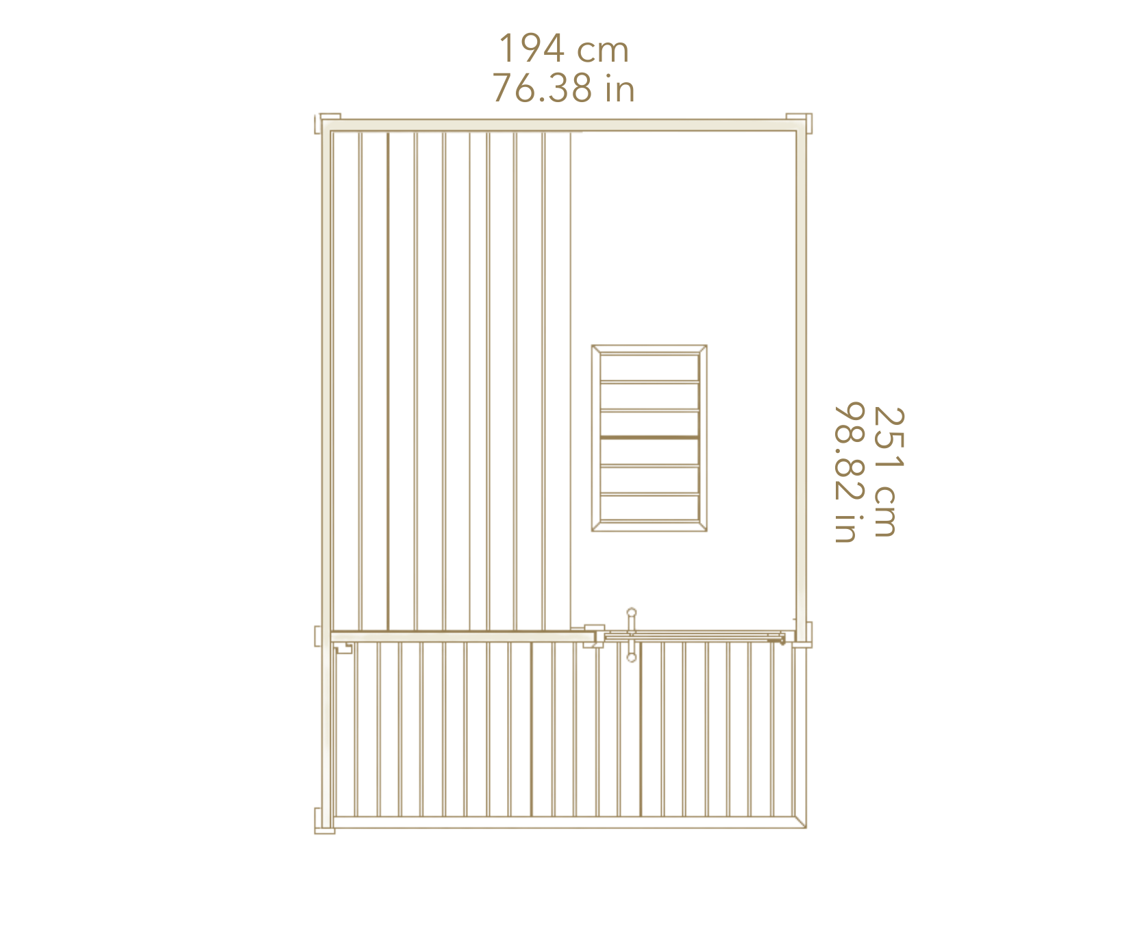 - Maße: L: 251 cm | B: 194 cm | H: 248 cm Grundrahmen: getrocknete Fichte, lackiert