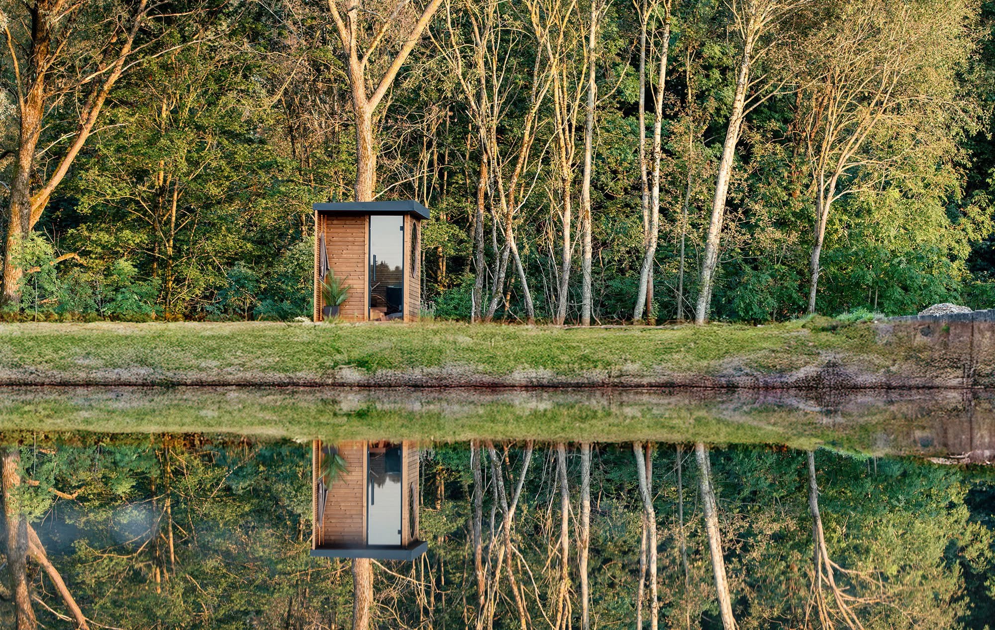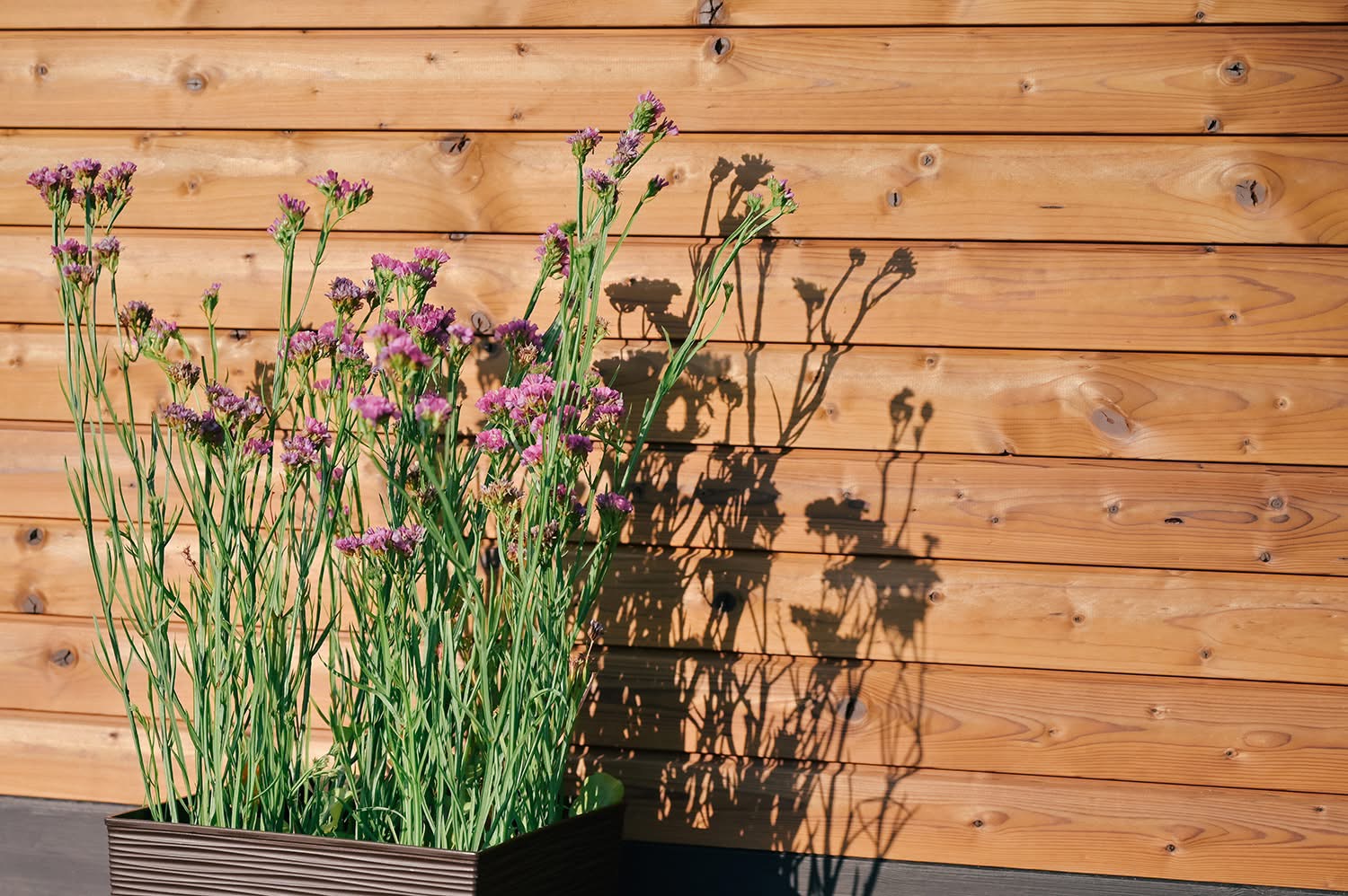 Moderne Linien, eine geringe Stellfläche und ein markantes Fassadenprofil machen Kaia ideal für Gärten, Hinterhöfe oder Ferienhäuser.