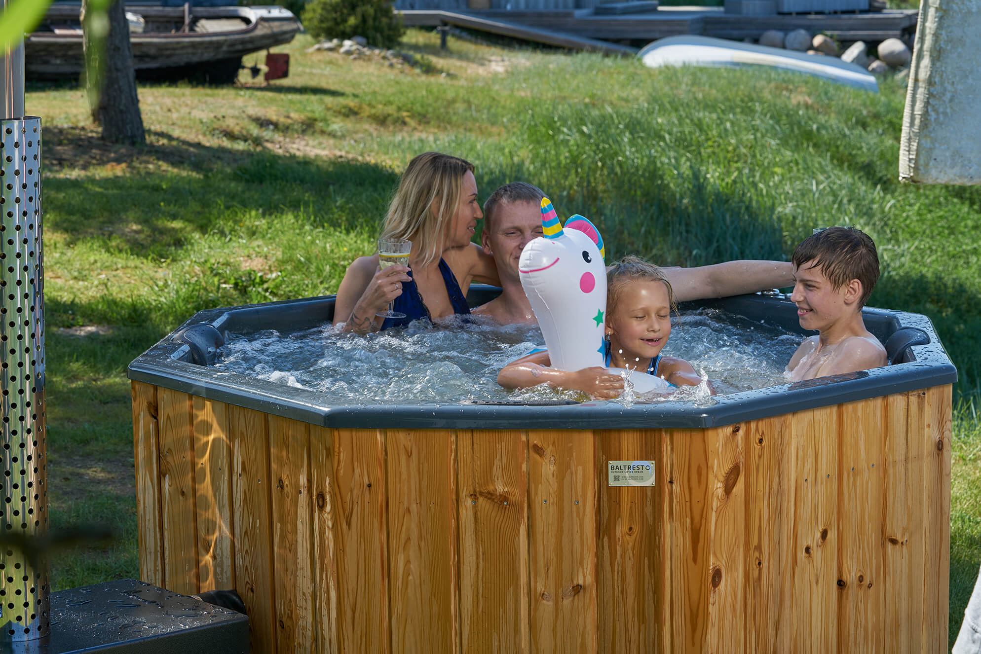 Ein praktisches, sicheres und langlebiges Hot Tub aus GFK, verkleidet mit Thermoholz. Komfortable Sitze und 4 gepolsterten Kopfstützen machen den Badezuber bequem und gemütlich. Das Produkt wird montiert und gebrauchsfertig geliefert. Das achteckige Badefass hat ein stilvolles Erscheinungsbild und ist eine hervorragende Kombination aus moderner Technologie und erschwinglichem Preis. Dieses Topmodell aus unserem Sortiment bietet hervorragende Erholung und Entspannung für die ganze Familie.