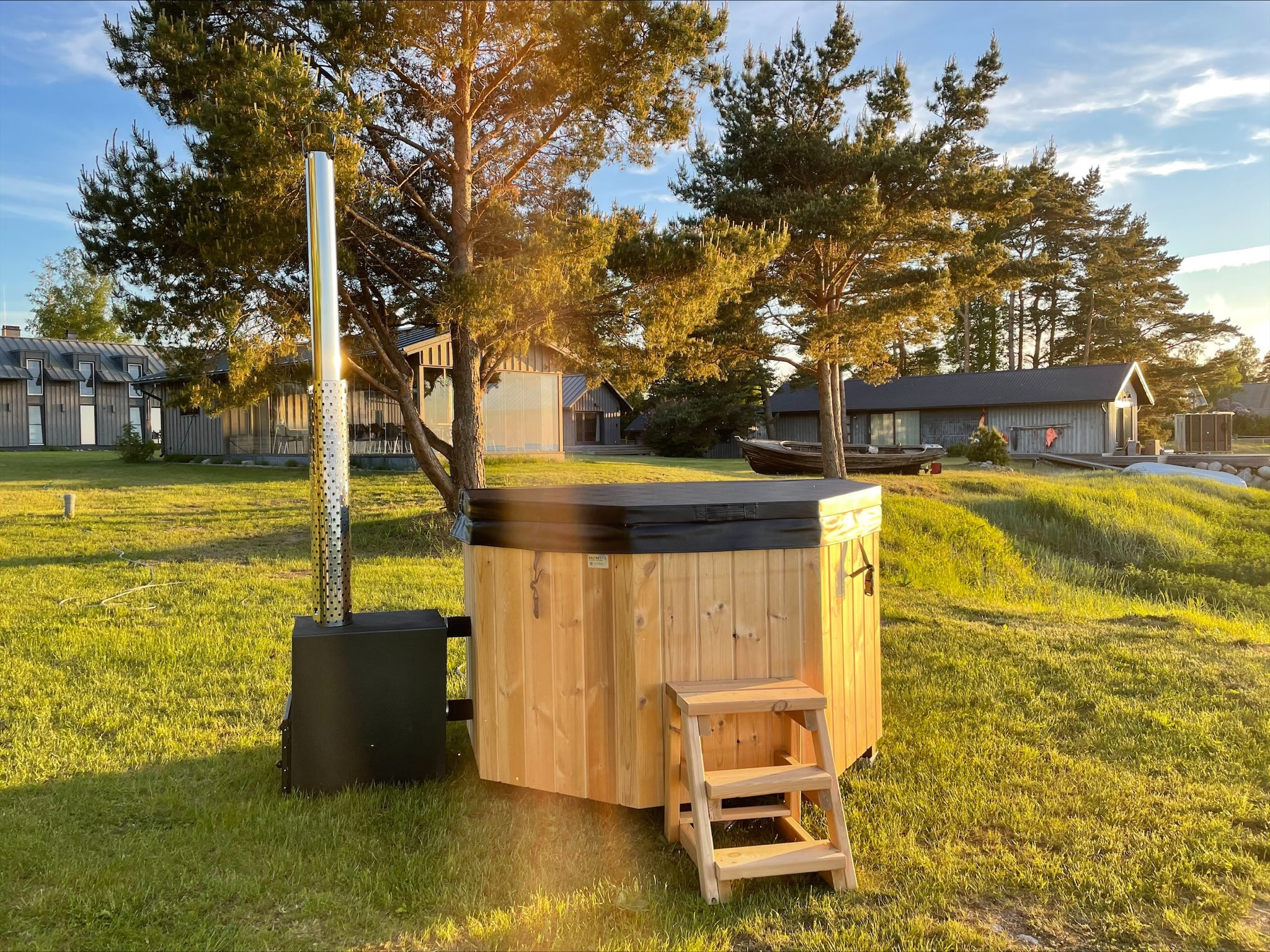 Beim Kauf dieses Badezubers können Sie die Farbe des GFK-Einsatzes, den Typ und die Leistung des Holzofens auswählen, das Produkt mit zusätzlichem Zubehör verbessern und ein modernes Badefass mit Whirlpool erhalten.