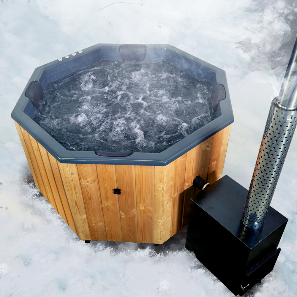 Der Octa Badezuber mit Whirlpool ist eines unserer beliebtesten Produkte und das ist nicht verwunderlich. Die Form eines Badezubers mit Whirlpool ist originell, ergonomisch und angenehm fürs Auge. So ein Badezuber mit GFK ist eine schöne Dekoration für Ihren Garten und ein toller Wasserspaß für Erwachsene und Kinder. Für die Akrylauskleidung können Sie zwischen vier attraktiven Farben wählen – sogar mit Perleffekt, um Ihren Badezuber mit Whirlpool perfekt Ihrem Garten anzupassen. Die Außenverkleidung der Wannen besteht aus Thermoholz und wurde speziell behandelt, um die Materialien vor Fäulnis, Schimmel und Pilzen zu schützen.