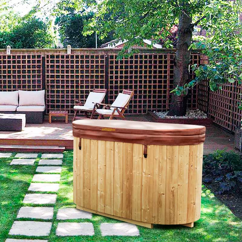 Mit dem kleinsten und raffiniertesten Modell Badezuber Oval sparen Sie Platz im Garten und erhalten gleichzeitig maximale Freude und Komfort während des Benutzens. Dieser Badezuber ist mit 2 gepolsterten Kopfstützen und Sitzen bequem ausgestattet. Mit ca. 800 l Füllung ist die GFK- Wanne sparsam und das Wasser kann schnell erwärmt werden. Die Außenverkleidung von des Hot Tub Holz besteht aus Thermoholz: einem besonders haltbaren und umweltfreundlichen modernen Material.
