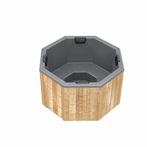 Octa ist eine Serie von achteckigen Badezubern mit GFK Einsätzen und einer Verkleidung aus Thermoholz. Das 1,8 x 1,8 Modell ist für 5 – 6 Personen vorgesehen, und das Model in Größe 2 x 2 für ca. 7 Personen. Die Form eines GFK-Einbaus wurde unter Berücksichtigung der Anatomie von Personen mit beliebiger Körpergröße entwickelt und ermöglicht damit einen komfortablen und sicheren Aufenthalt in einem Badezuber mit Whirlpool während einer hydrotherapeutischer Entspannungsrunde zu jeder Jahreszeit.