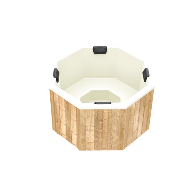 Der Octa Badezuber mit Whirlpool ist eines unserer beliebtesten Produkte und das ist nicht verwunderlich. Die Form eines Badezubers mit Whirlpool ist originell, ergonomisch und angenehm fürs Auge. So ein Badezuber mit GFK ist eine schöne Dekoration für Ihren Garten und ein toller Wasserspaß für Erwachsene und Kinder. Für die Akrylauskleidung können Sie zwischen vier attraktiven Farben wählen – sogar mit Perleffekt, um Ihren Badezuber mit Whirlpool perfekt Ihrem Garten anzupassen. Die Außenverkleidung der Wannen besteht aus Thermoholz und wurde speziell behandelt, um die Materialien vor Fäulnis, Schimmel und Pilzen zu schützen.