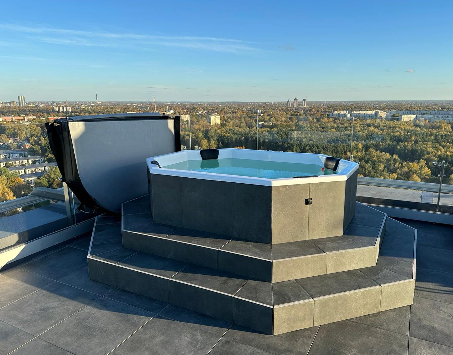 Das neue Modell aus der Serie der achteckigen Baltresto Badezuber ist geräumiger geworden und kann bis zu 9 Personen beherbergen. Dieser Badezuber kombiniert natürliche und moderne Materialien gleichzeitig. Die Außenseite der Badetonne ist mit Thermoholz verkleidet. Das Innere des Badezubers, der Einsatz, besteht aus hochwertigem GFK, der eine sehr hohe Umweltbeständigkeit, einfache Wartung und lange Lebensdauer gewährleistet. Sie können die Grundausstattung mit Spa-Wellness Komponenten erweitern und zwischen einem Holzofen oder einem elektrischen Heizer wählen.