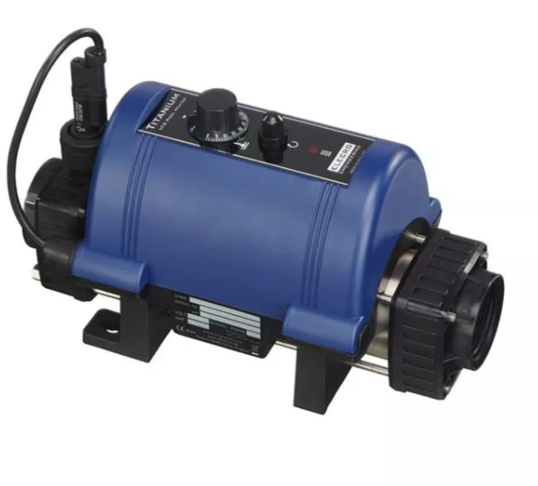 Widerstand aus Titan. Erfordert einen Durchfluss von nur 1 m3/h. Die elektrische Poolheizung kann auch als zusätzliche Heizung zusammen mit einem anderen Heizsystem verwendet werden. 3 kW-Heizung für private Swimmingpools. Die Heizung muss im Technikbereich des Swimmingpools angeschlossen werden. Der Pool muss mit einem isolierenden Sommerabdeckung abgedeckt werden.