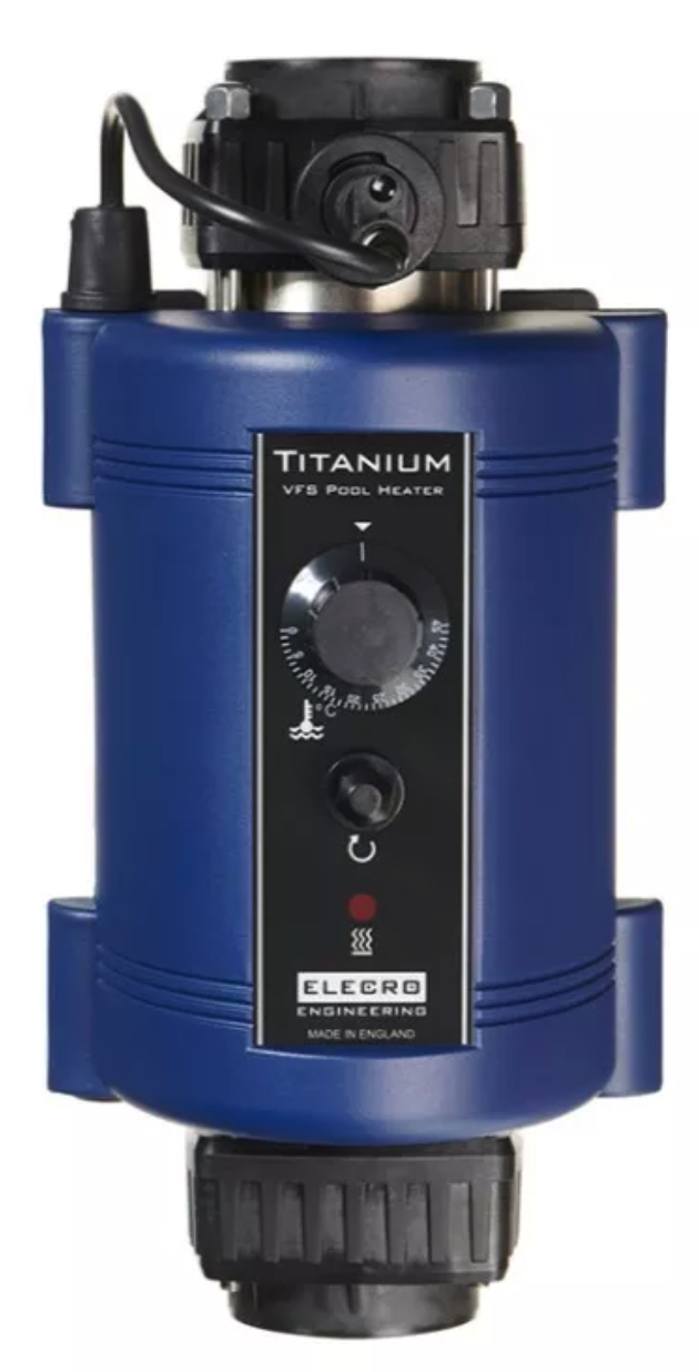 Durchfluss: minimal 1 m³/h - maximal 17 m³/h.Kontrollthermostat: 0 - 40°C (Graduierung von 1°C).Sicherung: 55°C (manueller Neustart).Durchflusssensor (flow switch): Kontaktfeder mit feiner Goldschicht verkleidet. Heizelement: Titan (für Salzelektrolyse-Systeme geeignet).Kabel: A hohe Temperatur, Kabelkanal aus Silikon, Kupferleitung.Schweißnähte: spezielle Polymerformel durch hohe Temperatur.Wasseranschlüsse: 1½" (50 mm) Adapter für den Anschluss von ABS-Rohren enthalten.Druck bei Betrieb: max. 4 bar.Installation: Technikbereich des Swimmingpools, Befestigung auf dem Boden oder an der Wand.Manufactured in the UK.