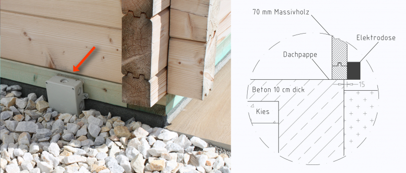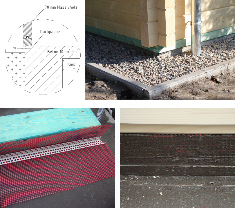 - massive Blockbohlen aus 70 mm nordischer Fichte mit Ecküberstand