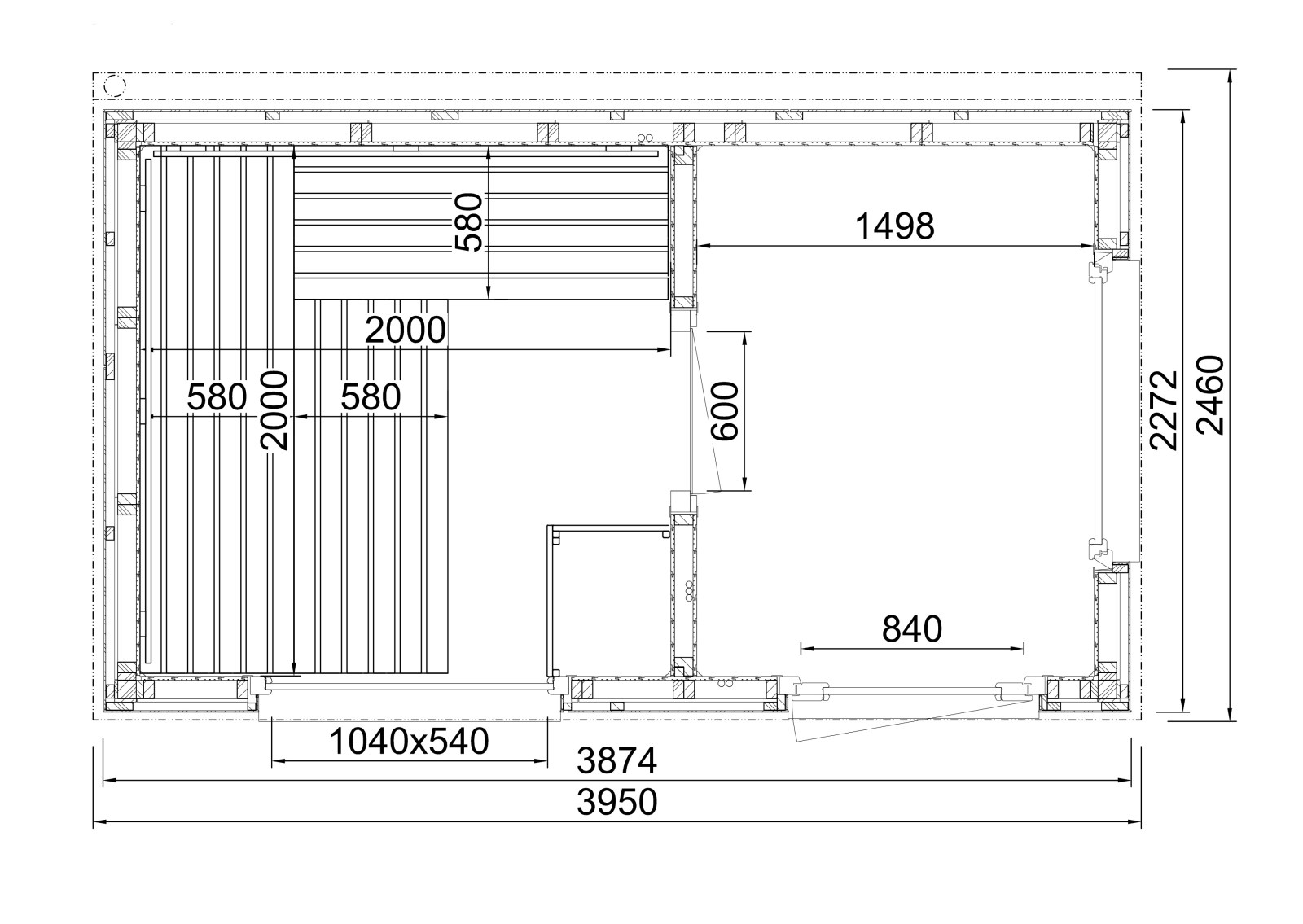 Außenmasse B x T x H: 3874 x 2272 x 2450