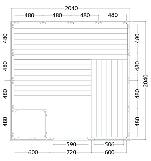 ■ Türe aus ESG Glas (590 x 1915 x 8 mm) links oder rechts anschlagbar