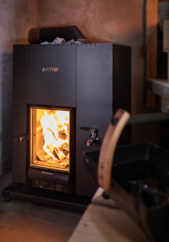 Sauna Holzofen Harvia Linear 22 RS mit Wassertank auf der rechten Seite - Zeitloses Design trifft starke Konstruktion