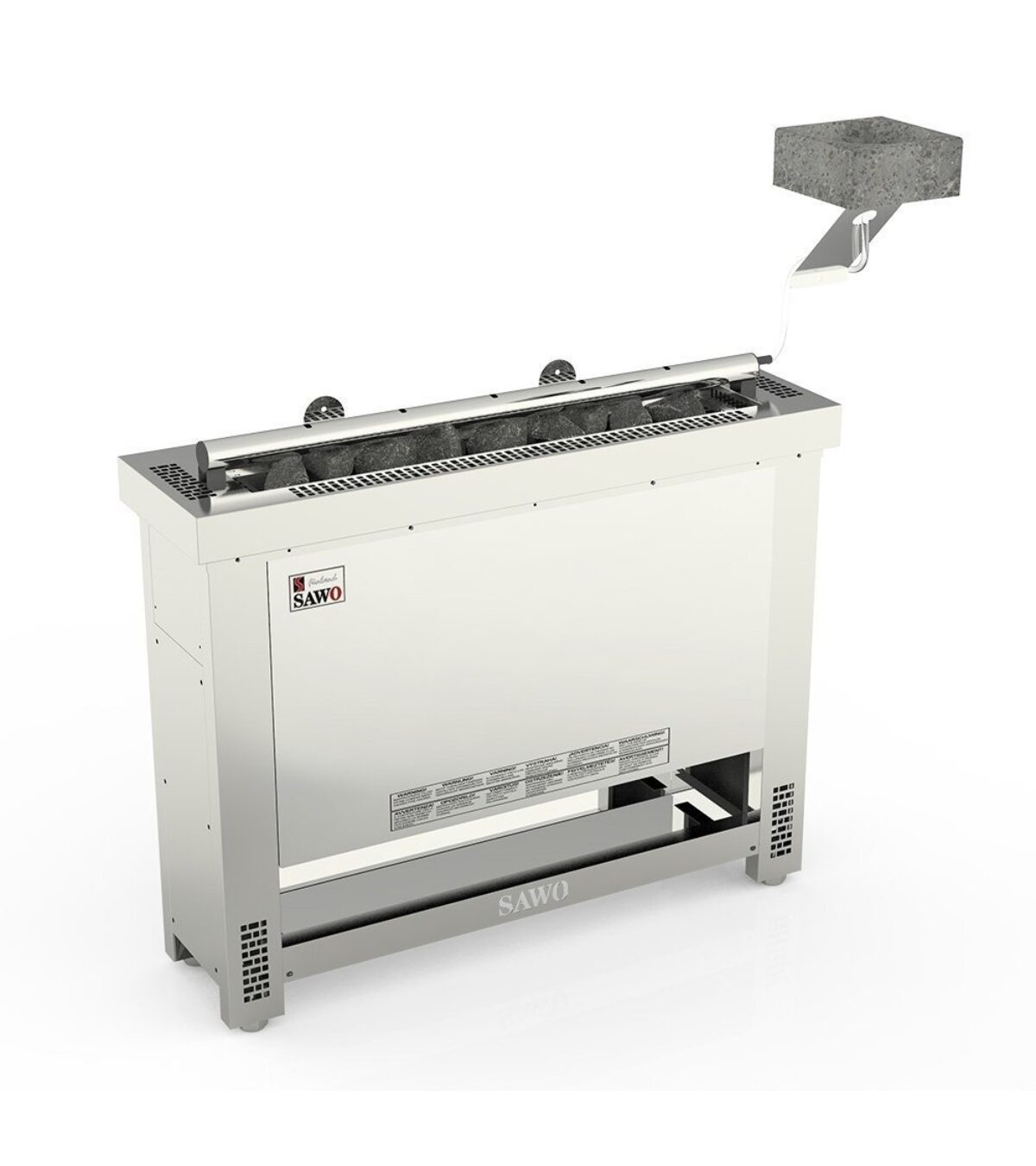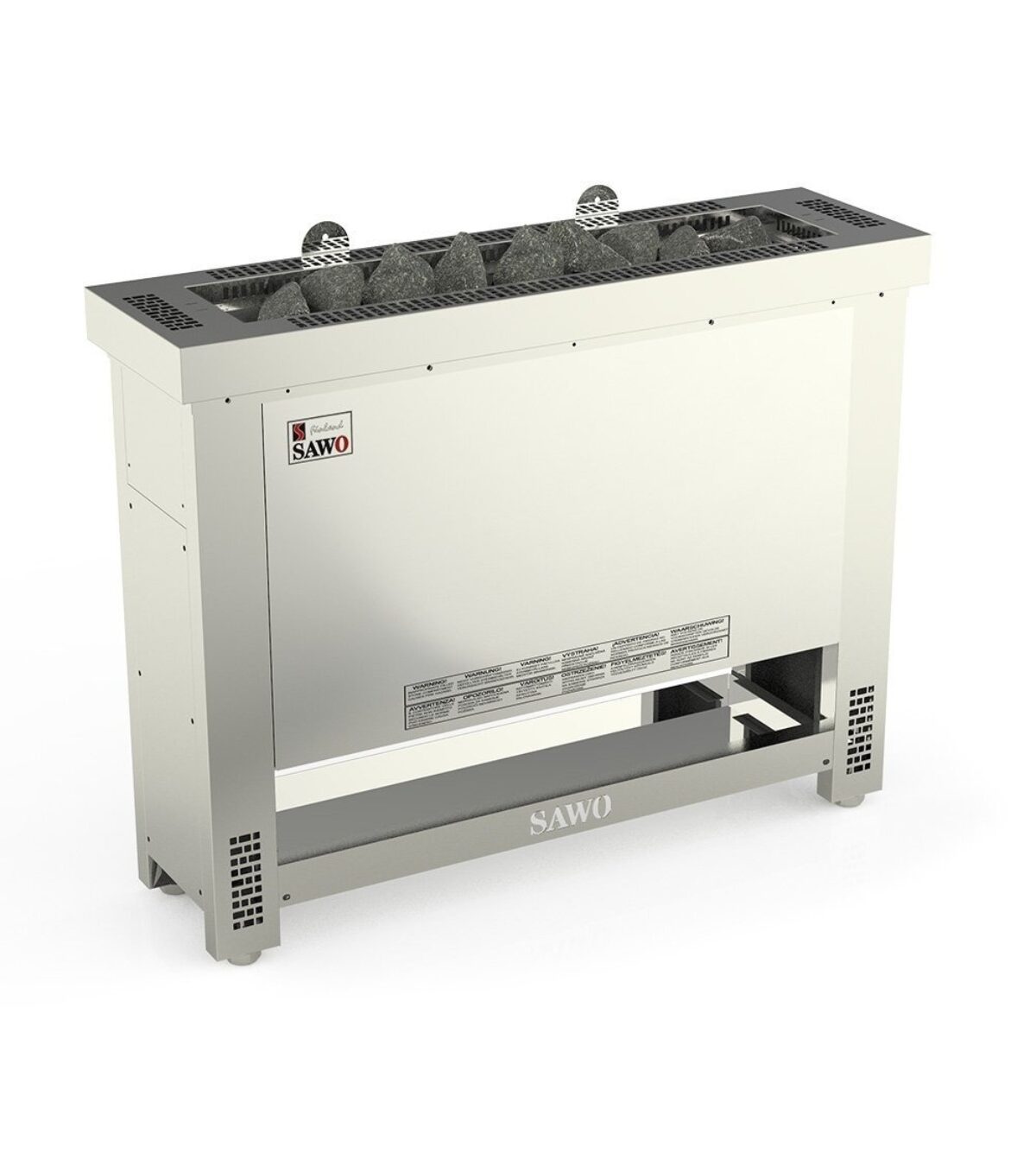 Dank seinem einzigartigen Designs und schlanker Form braucht Helius einen Mindestabstand von 5 mm. Dies ermöglicht eine flexible Positionierung des Ofens. Genius Lüftungs-Luftstrom Design von Helius heizt die Sauna schnell und versehentlichen Kontakt mit dem Ofen ist vermeidbar, da es an einem entfernten Platz in Ihrer Sauna aufgestellt werden kann. Das Außengehäuse ist aus Edelstahl. Benötigt separate Steuerung.