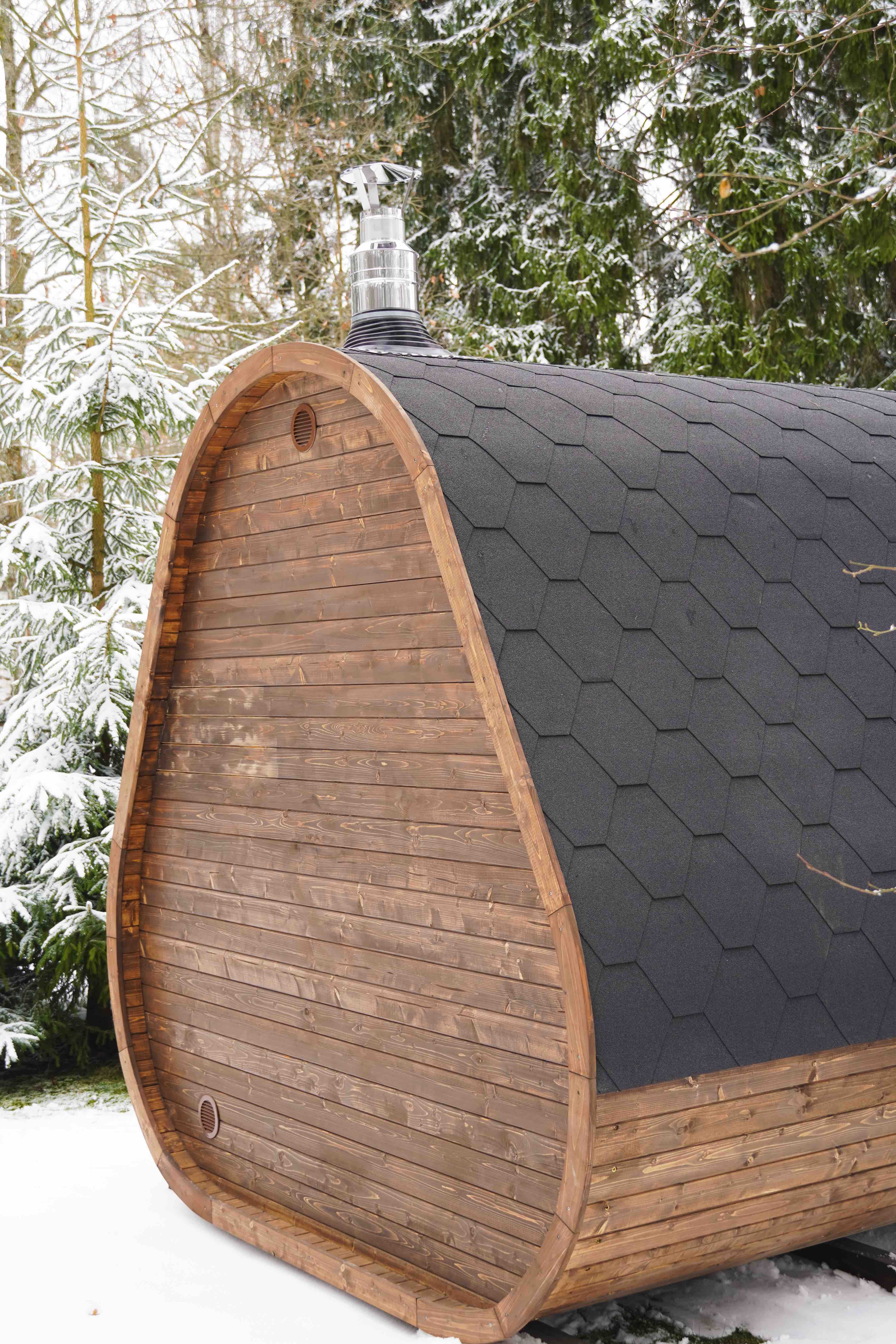 Herkus Classic zeichnet sich durch seine einzigartige Tropfenform und fließenden Linien aus und bietet eine moderne Interpretation der klassischen Sauna. Sie ist für 6 Personen ausgelegt und misst 2,28 x 2,37 m bei einer Höhe von 2,43 m. Damit vereint sie **prägnante Ästhetik** mit funktionalem Komfort – die perfekte Wahl für alle, die sowohl Stil als auch Wohlbefinden schätzen.