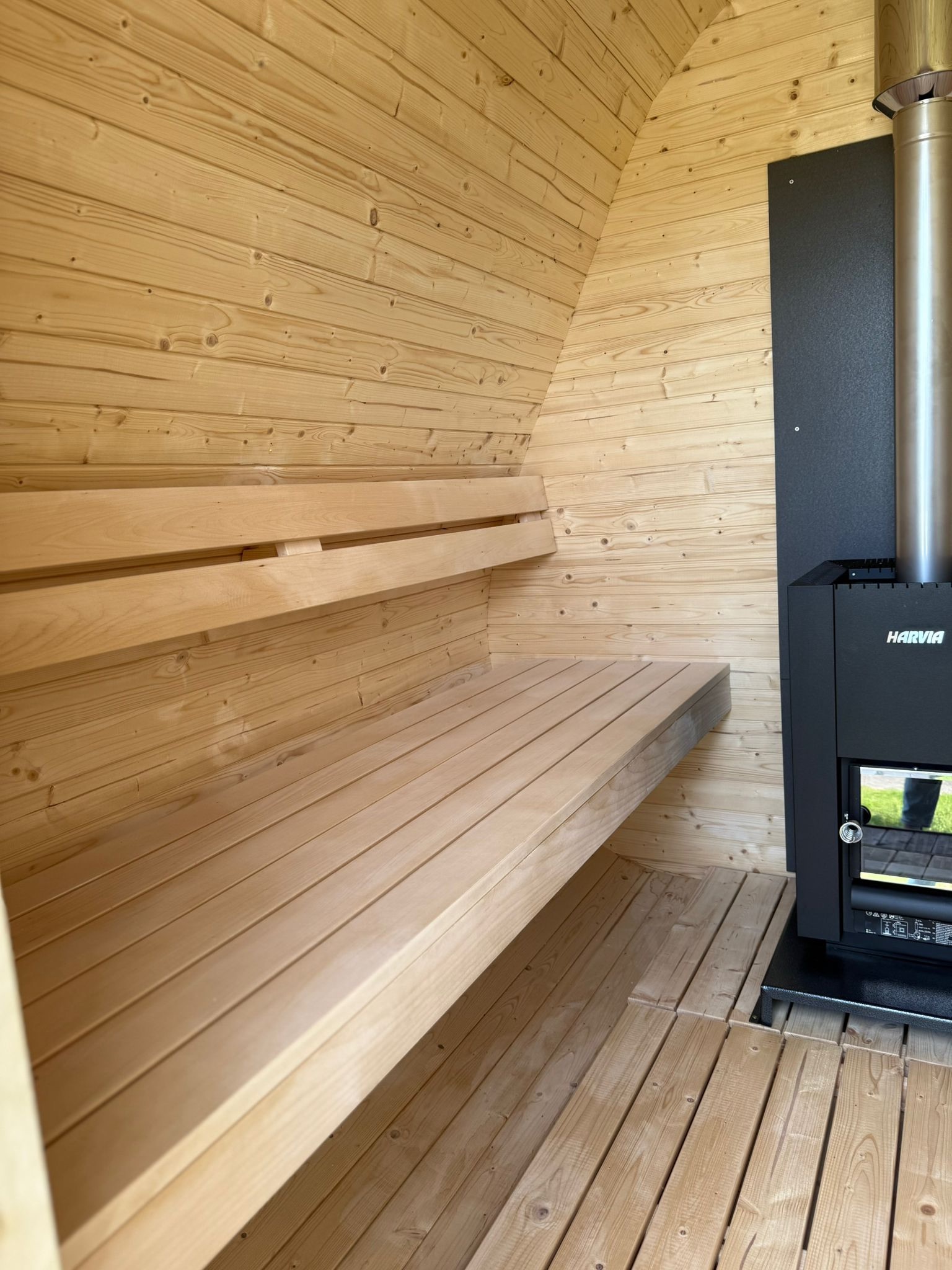 Passen Sie das Erscheinungsbild Ihrer Sauna an Ihren individuellen Stil an. Wählen Sie zwischen einer natürlich geölten Oberfläche, die die Holzmaserung betont, oder einer lackierten Außenseite für einen markanten, eleganten Look. Jede Variante ist behandelt, um Witterungseinflüssen standzuhalten und zeitlose Ästhetik zu bieten.