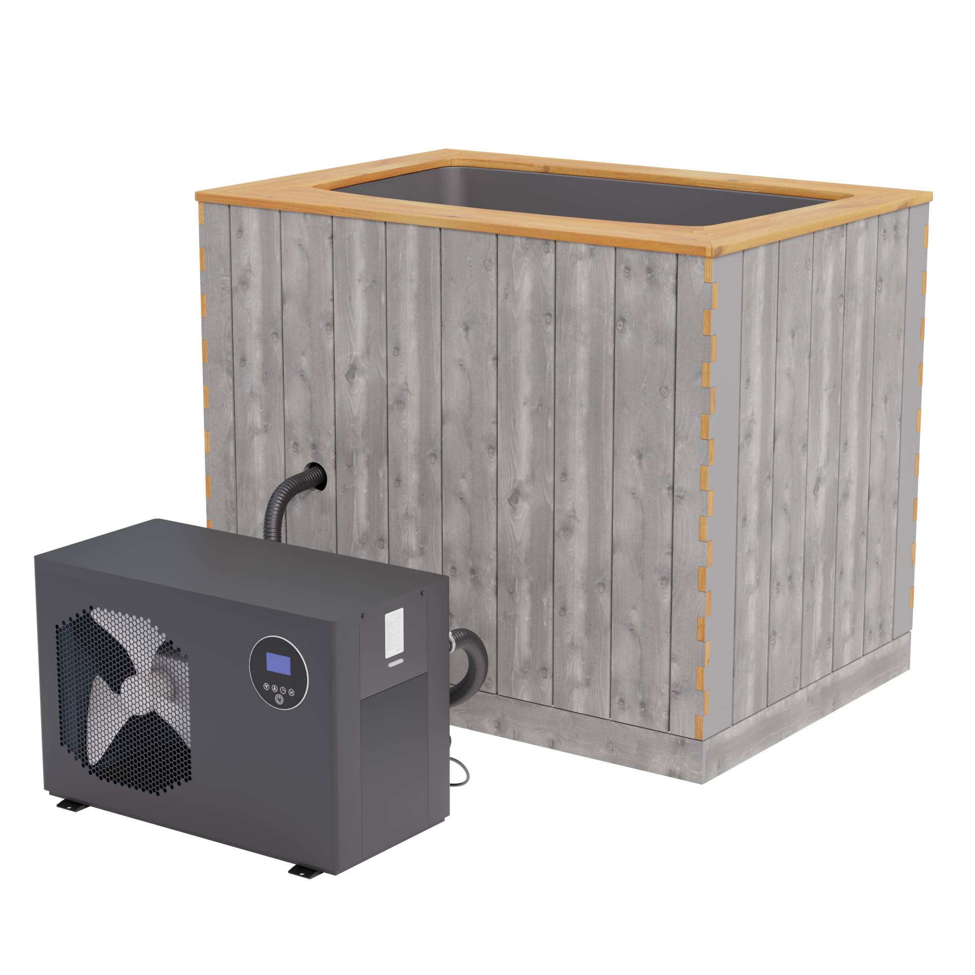 Das zu unserer Premium-Serie gehörende NordicIce S Dualex ist ein rechteckiges Becken mit Außenverkleidung. Es ist durchgehend isoliert, hat ein Innenbecken aus Kunststoff, ist pflegeleicht und verfügt über eine graue Steinbank an einem Ende des Beckens. Durch ihr Gewicht und die beiden Steinbeine bleibt die Sitzbank fest auf dem Boden des Beckens stehen. Die Sitzfläche ist standardmäßig grau, aber die Steintöne können variieren. Da das Becken so leicht und kompakt ist, kann es sowohl in kleinen Gärten als auch auf Terrassen einfach aufgestellt werden. Das Becken ist für die Nutzung zu für eine Person geeignet. Installation nach dem Plug-and-Play-Prinzip.