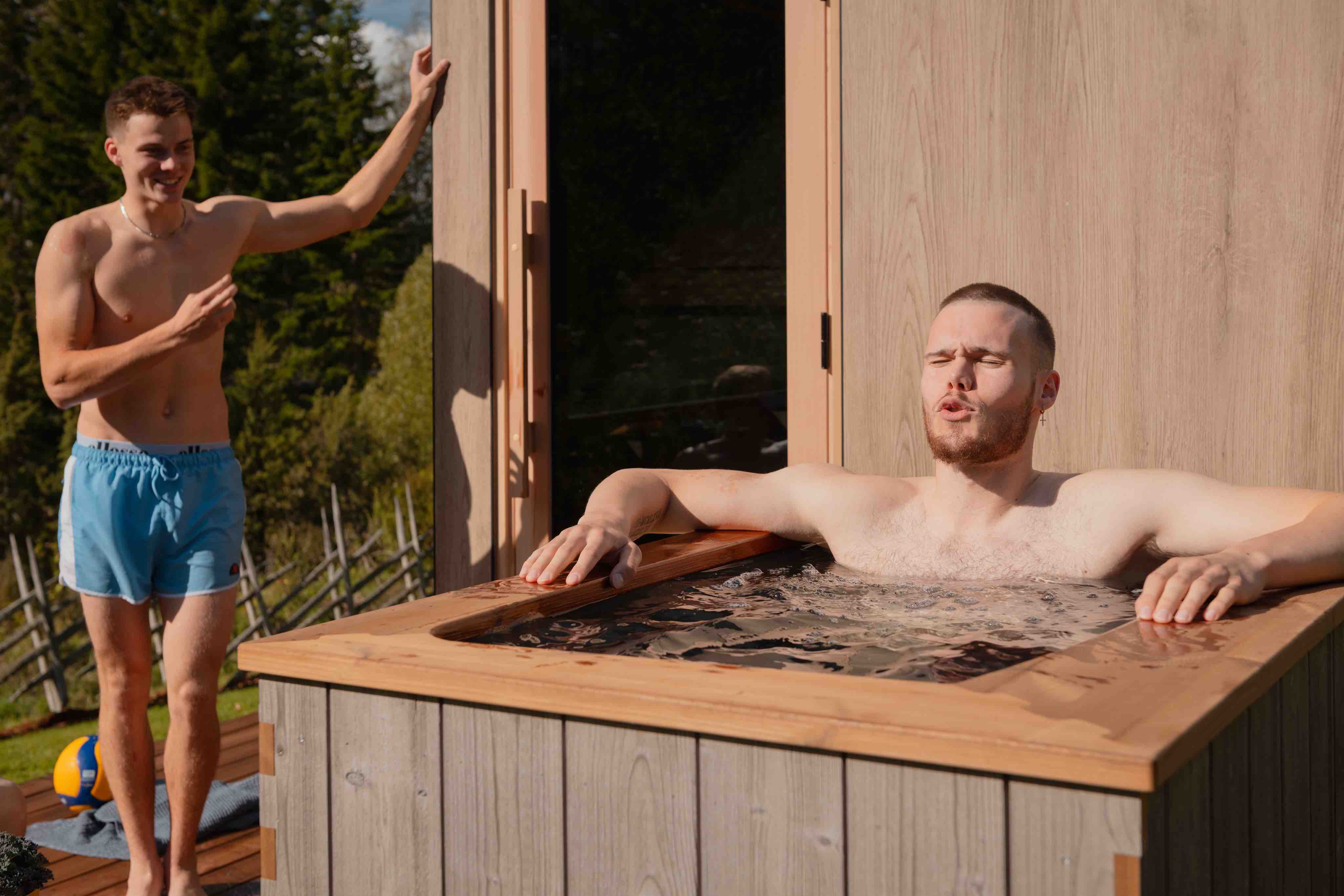 Steigen Sie nach den wärmenden Aufgüssen in das neben der Sauna wartende Becken, wo das Prickeln des kalten Wassers auf Ihrer Haut alle Sinne weckt und Ihnen hilft, sich von einem anstrengenden Tag zu erholen. Oder Sie gönnen sich ein herrlich warmes und entspannendes Bad. Beides ist möglich, denn das Premium NordicIce S -Becken ist mit einer Dualex-Luftwärmepumpe ausgestattet, die das Wasser kühlt, aber auch eine Heizfunktion bietet.