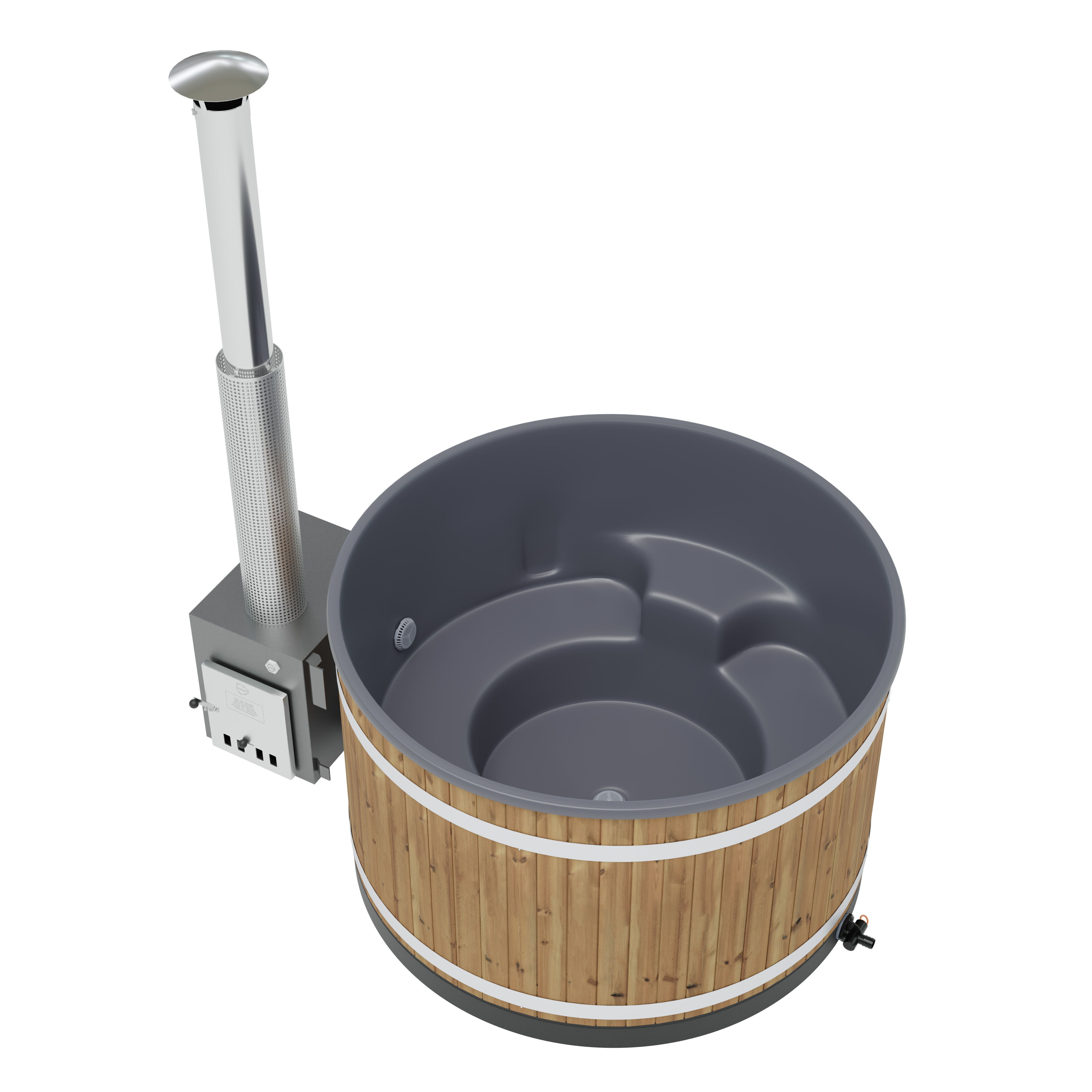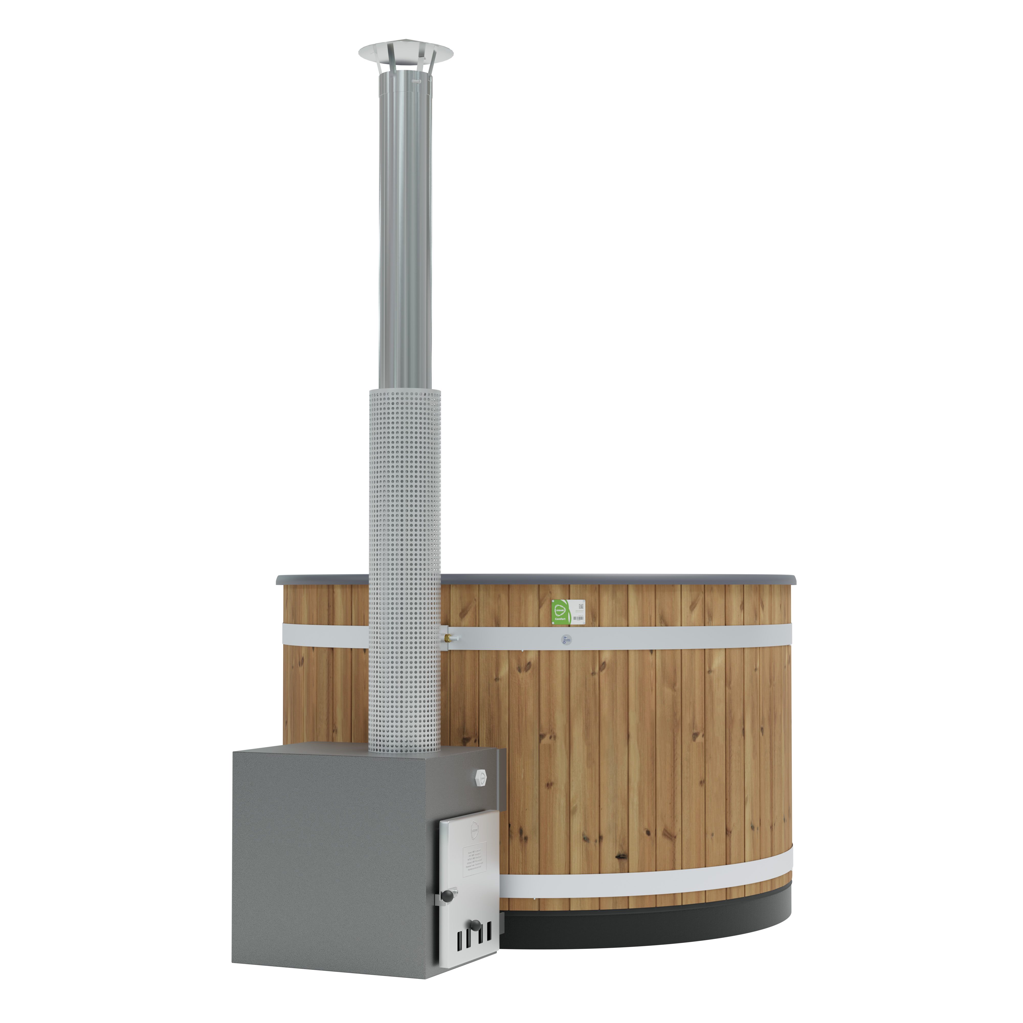 Als Außenofen kommt der grau gehaltene Macu zum Einsatz, der sich ideal zum Beheizen mittelgrößer Badefässer eignet. Er wurde aus hochwertigem Meeresaluminium gefertigt, was eine äußerst gute Wärmeleitfähigkeit sicherstellt.