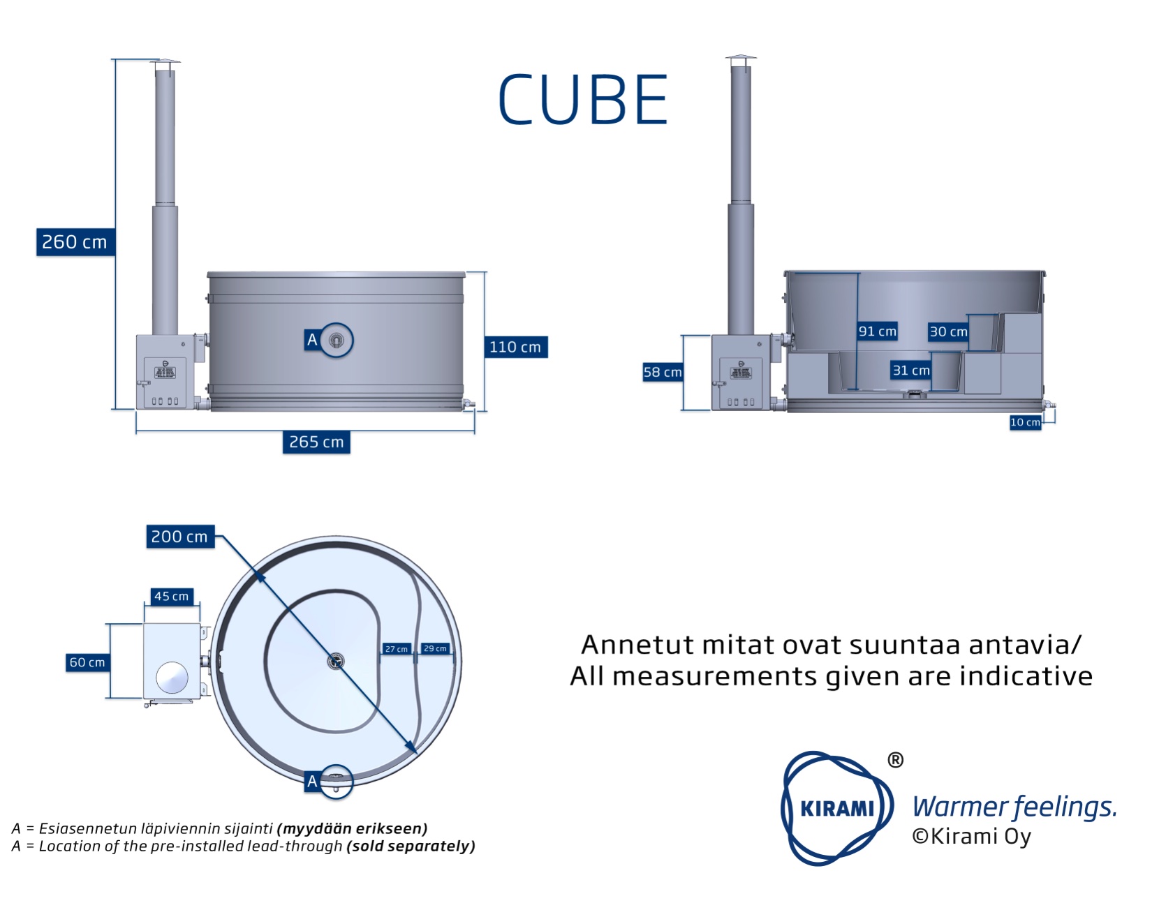 Der Durchmesser des Fasses beträgt 170 cm bei einem Fassungsvermögen von 615 l und einem Trockengewicht von 92 kg. Das Badefass bietet Platz für 1-2 Personen. Die Bruttoleistung des CULT-si-Ofens liegt bei 36 kW und die dem Wasser gelieferte Leistung bei 22 kW.