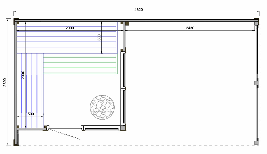 Dieses Modell kombiniert modernes Design mit Funktionalität und bietet eine L-förmige Bank, die bequem Platz für 4 Personen bietet. Ideal für alle, die bei ihrem Saunaerlebnis Wert auf Stil und Ausblick legen.