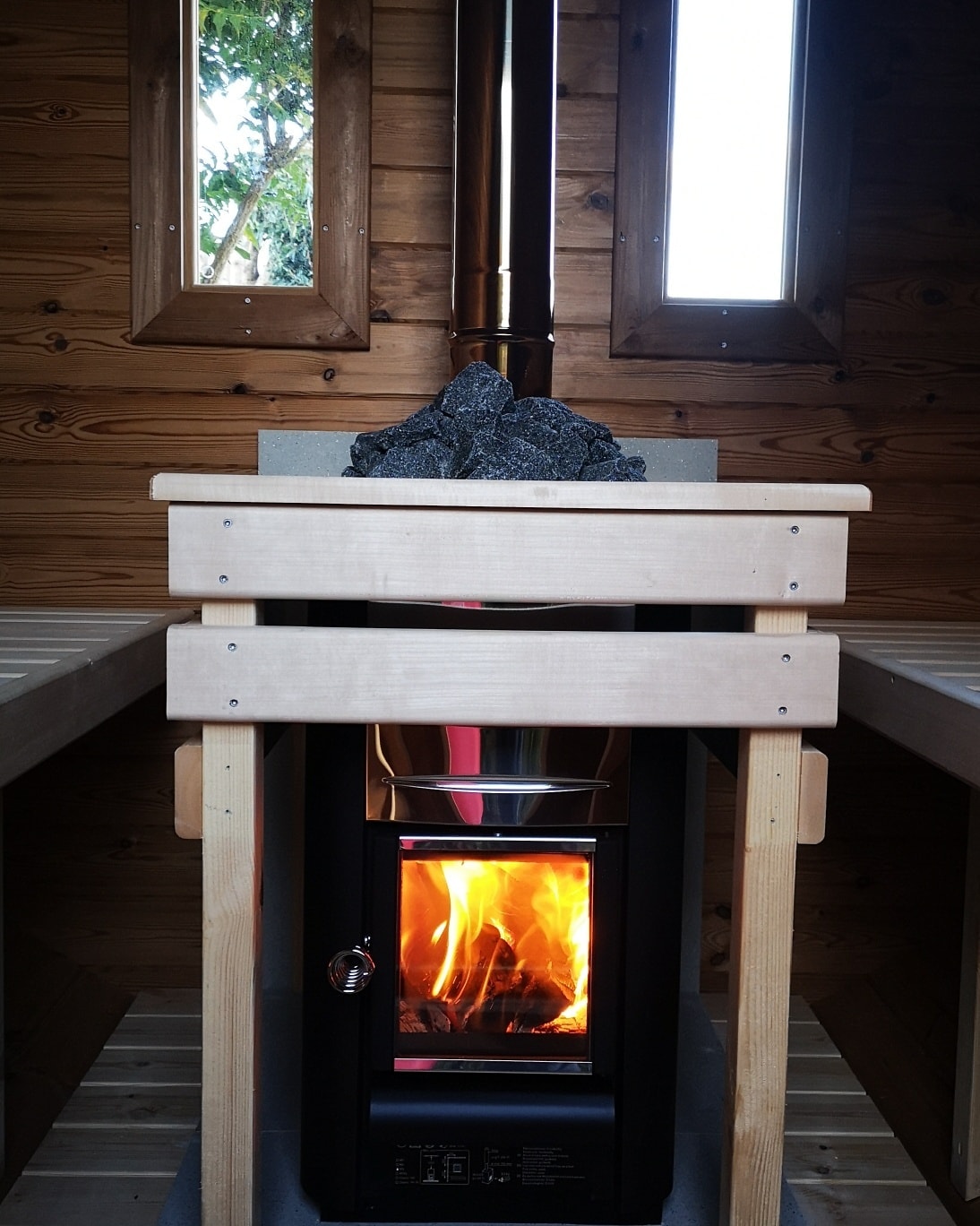 - Öfen: Holzofen (nur gerade Bank) / Elektroofen